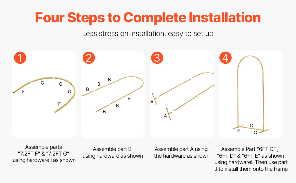 Tento 3-dielny zlatý svadobný oblúkový stojan na pozadie s rozmermi 6 x 2,6 ft, 5 x 2,2 a 4 x 1,7 ft s gázou dodáva svadbám romantiku a eleganciu. Stane sa pre hostí ohniskom hodným fotografovania. Modernizovaný odolný kovový rám s rozmermi 18 x 18 mm zaisťuje stabilitu a odolnosť.