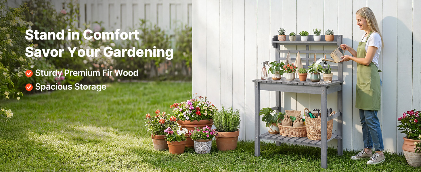 Náš stolík na sadenie je vyrobený z prvotriedneho jedľového dreva, odoláva poškodeniu a hnitiu a poskytuje silnú, dlhodobú odolnosť pre vašu záhradu.
