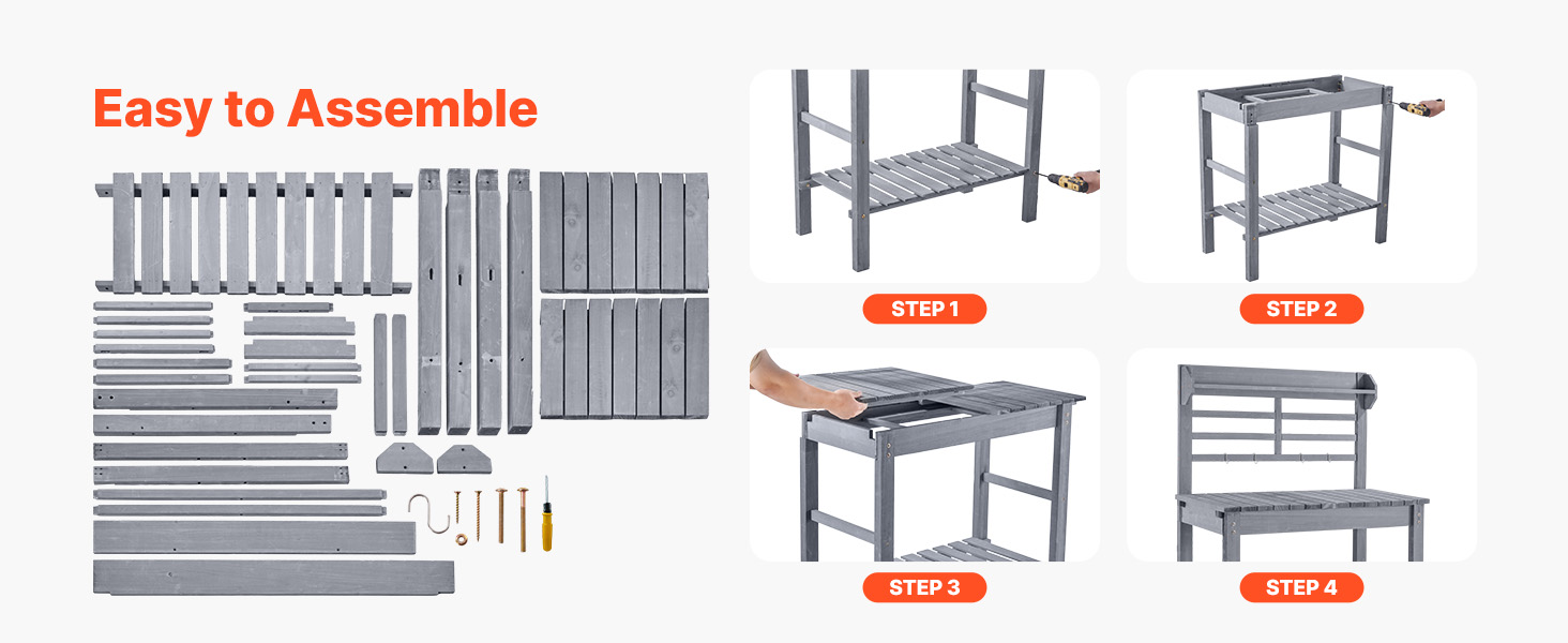Náš záhradnícky stôl obsahuje skrutkovač a prehľadný návod na použitie – stačí postupovať podľa krokov a montáž dokončíte za 20–30 minút.