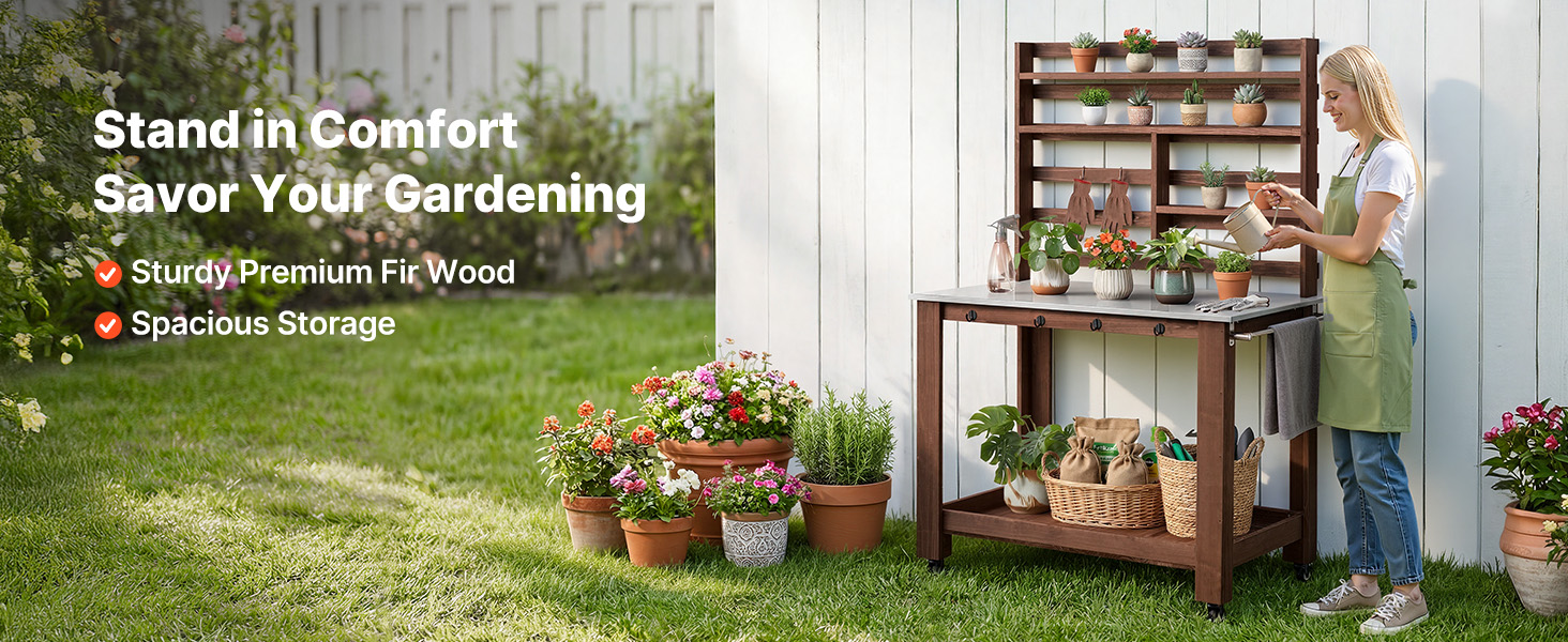 Náš stolík na pestovanie rastlín je vyrobený z prvotriedneho jedľového dreva, odoláva poškodeniu a hnitiu a poskytuje silnú, dlhodobú odolnosť pre vašu záhradu.