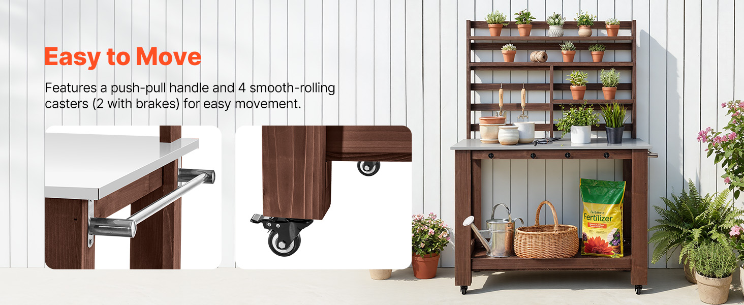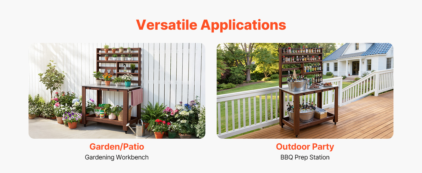 Náš stolík na sadenie môžete umiestniť do záhrady alebo na terasu ako pracovisko na starostlivosť o vaše rastliny v kvetináčoch. Slúži tiež ako prípravná stanica na odkladanie ingrediencií a nápojov na grilovanie.