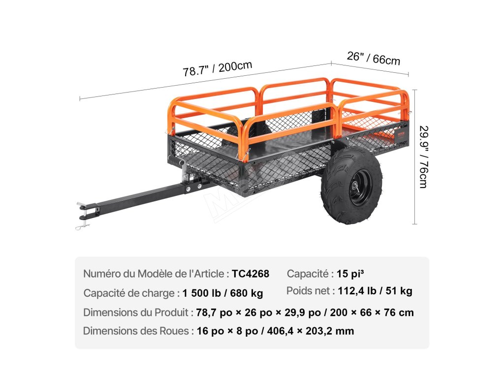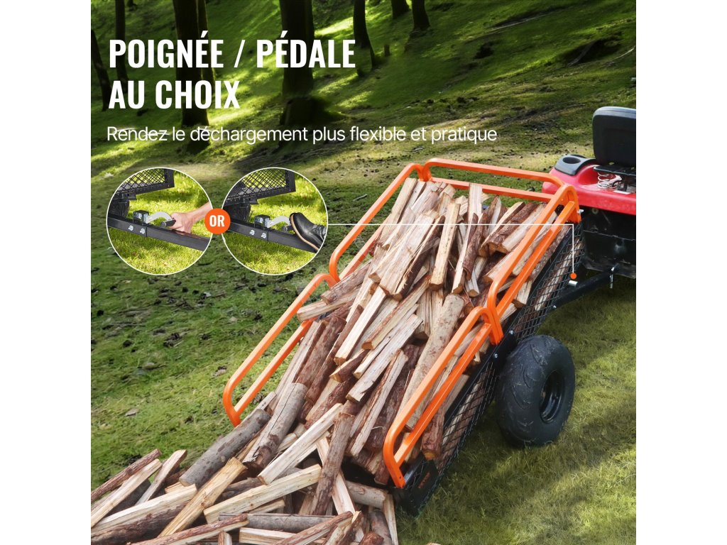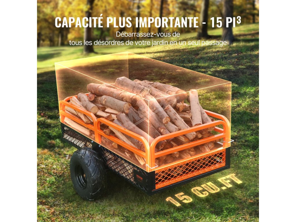 Optimalizujte svoj prepravný proces s naším veľkorysým vozíkom na sklápanie ATV s objemom 15 kubických stôp. Od zeminy a dreva až po rôznorodý odpad z dvora, odvezte viac na jeden záťah a rozlúčte sa s opakovanými, časovo náročnými cestami.