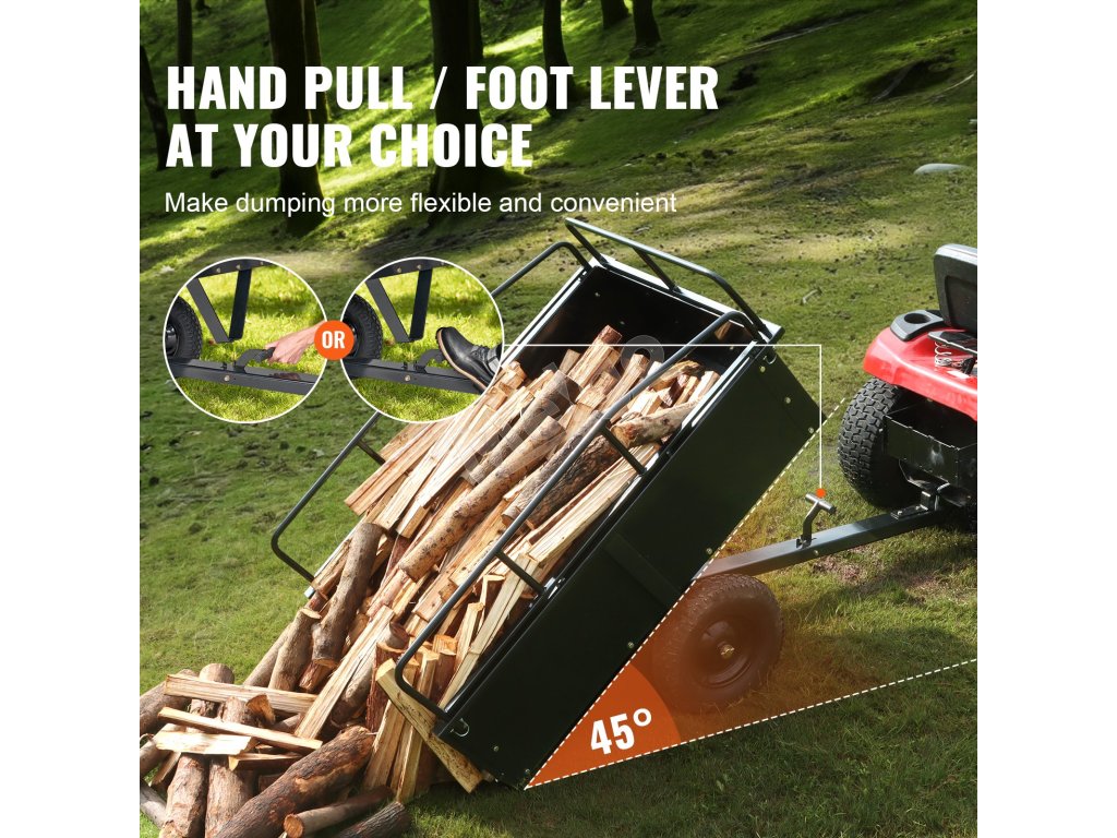 Optimalizujte svoj prepravný proces s naším veľkorysým vozíkom na sklápanie ATV s objemom 15 kubických stôp. Od zeminy a dreva až po rôznorodý odpad zo záhrady, odvezte viac na jeden záťah a rozlúčte sa s opakovanými, časovo náročnými cestami.