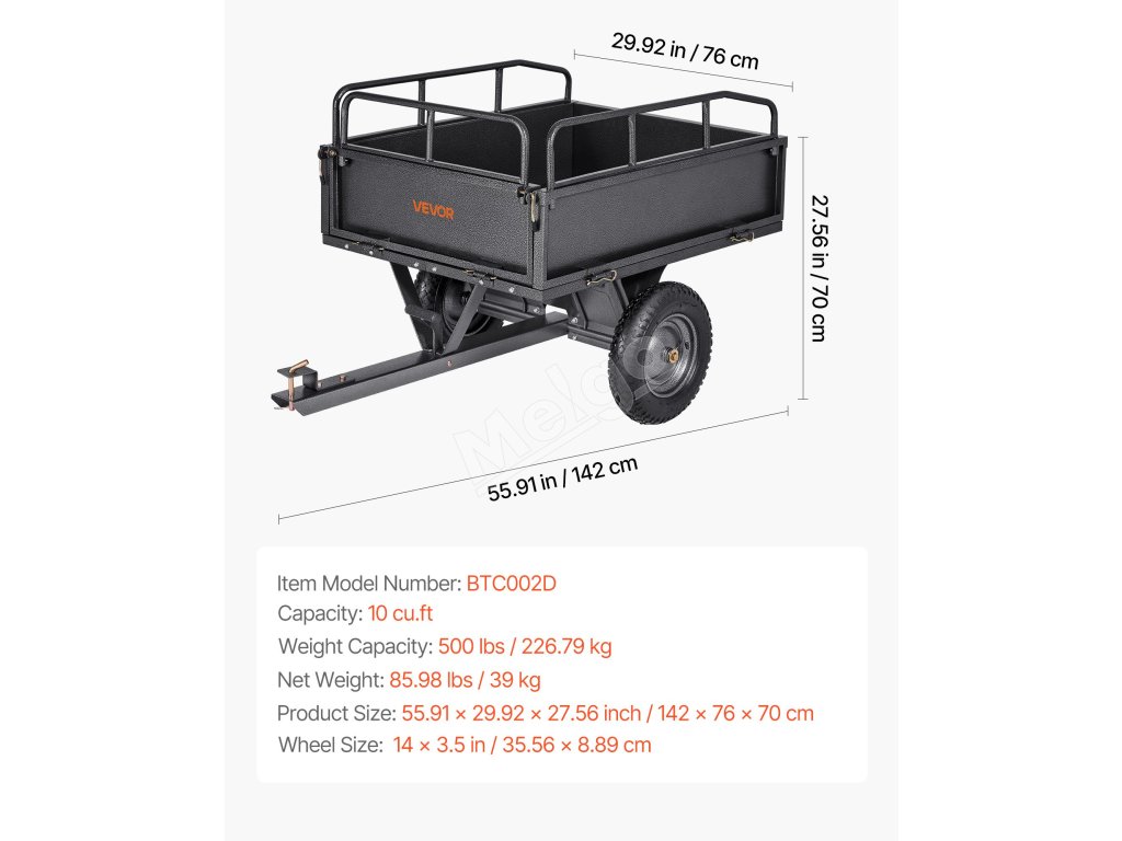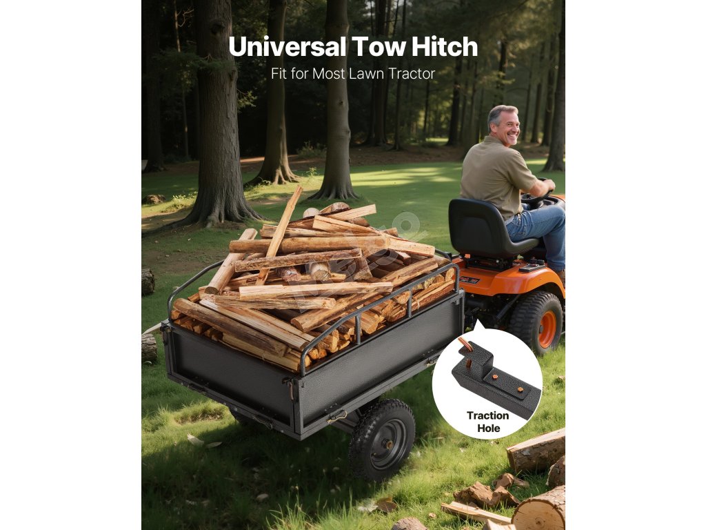 Tento 500lb záhradný príves je navrhnutý na prácu s rôznymi vozidlami vrátane traktorov, štvorkoliek, UTV, kosačiek na trávu a ďalších. Či už ste nadšenec do záhradkárčenia alebo farmár, ľahko ho pripojíte k svojmu zariadeniu na bezproblémové prevážanie.