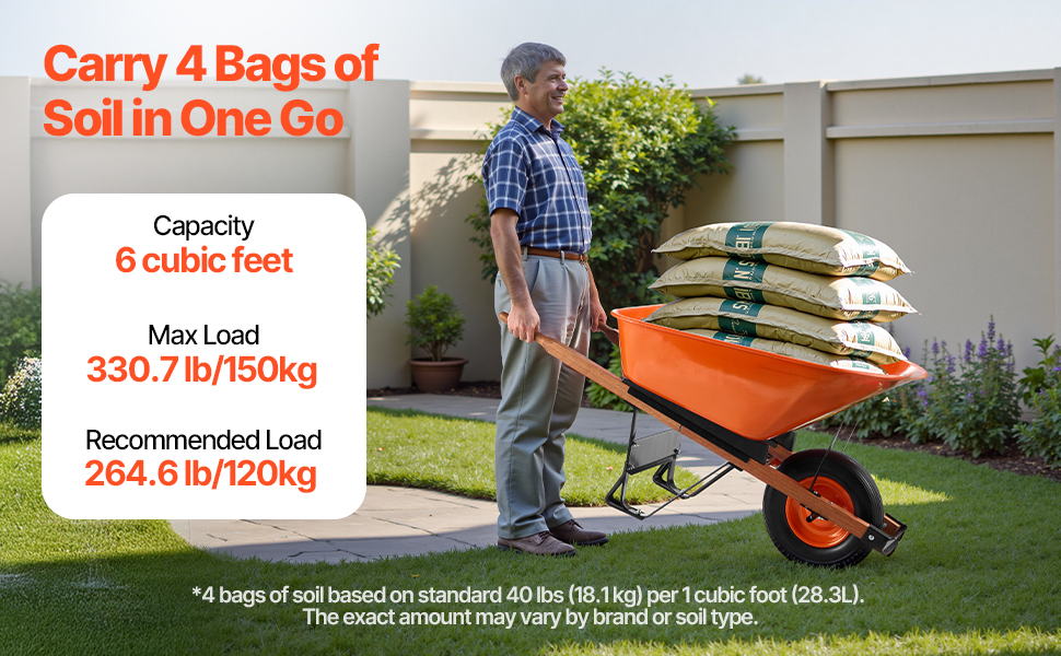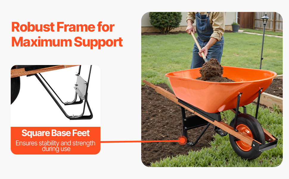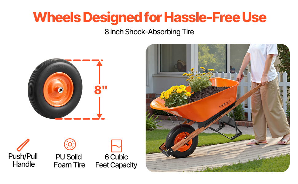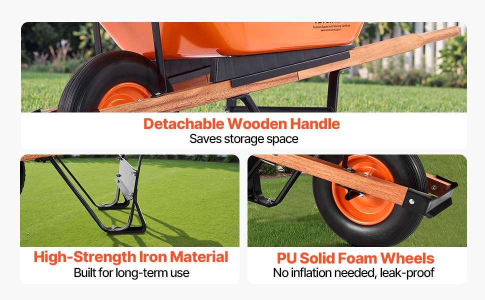 Tento ergonomický záhradný vozík má polstrovanú rukoväť a 16-palcové kolesá s hlbokými behúňmi pre plynulý a stabilný pohyb. Zostavený z robustného kovového rámu a PU kolies je ideálny na prepravu zeminy, štrku atď. Tento vozík sa ľahko zostavuje pomocou základného náradia a je ideálnym spoločníkom pri práci v záhrade.