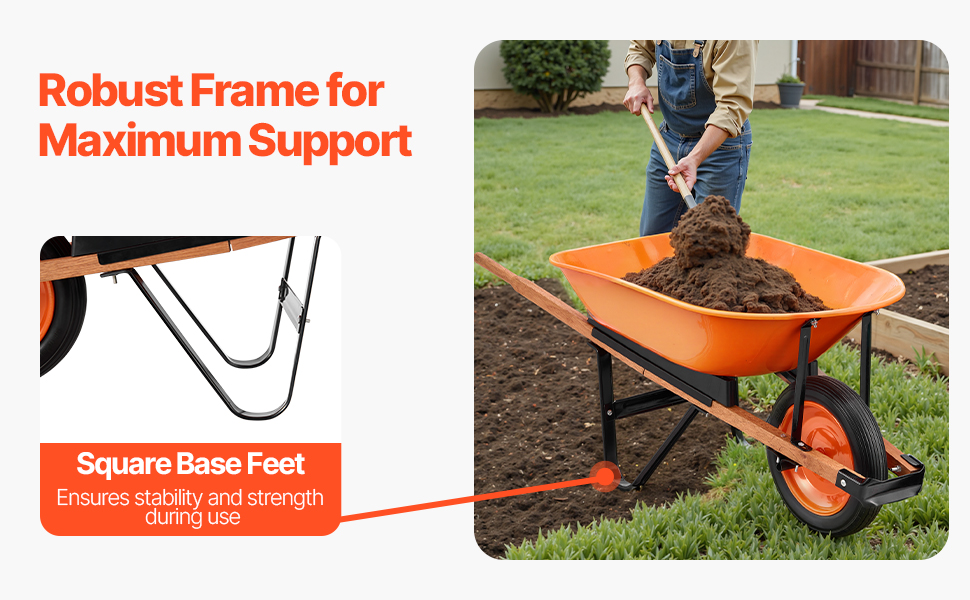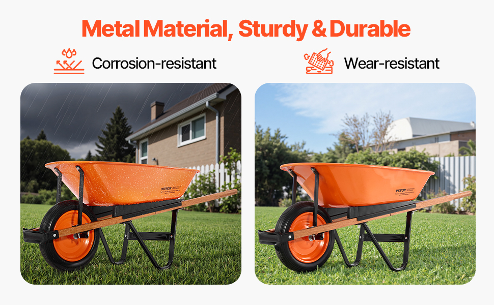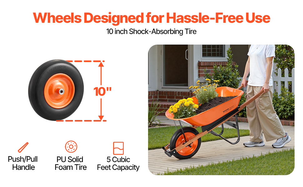 Tento ergonomický záhradný vozík má polstrovanú rukoväť a 16-palcové kolesá s hlbokými behúňmi pre plynulý a stabilný pohyb. Zostavený z robustného kovového rámu a PU kolies je ideálny na prepravu zeminy, štrku atď. Tento vozík sa ľahko zostavuje pomocou základného náradia a je ideálnym spoločníkom pri práci v záhrade.