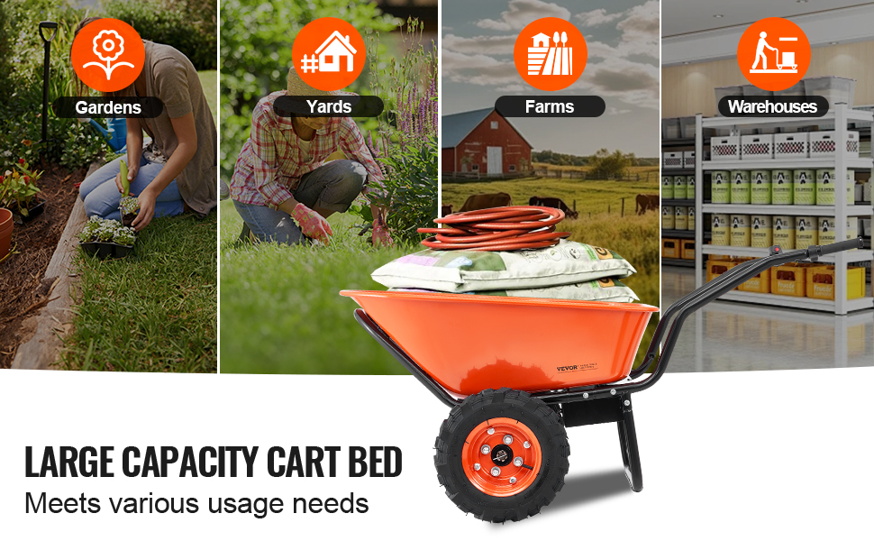 Tento záhradný vozík je ideálny na prepravu rastlín, pôdy alebo tovaru, či už v záhrade, na dvore, na farme alebo v sklade.