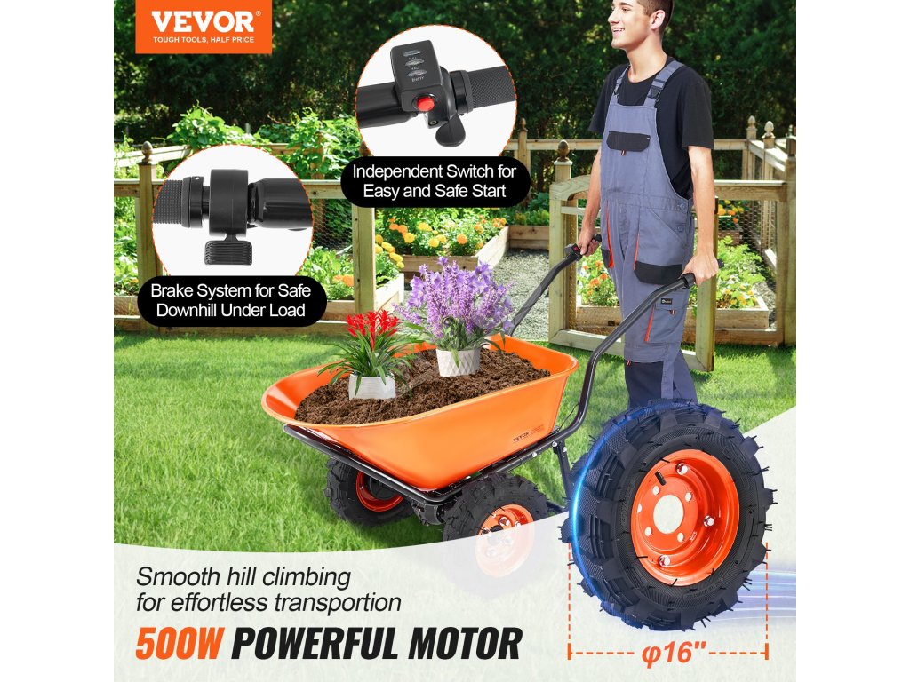 VEVOR 2-kolesový elektrický záhradný vozík: ideálny záhradný nástroj