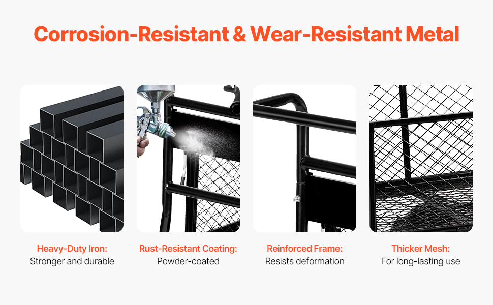 Tento oceľový záhradný vozík, vyrobený z odolnej ocele a s práškovým náterom odolným proti korózii, je skonštruovaný tak, aby vydržal aj v náročných podmienkach. Je odolný voči deformáciám spôsobeným dlhodobým intenzívnym používaním a vystavením vplyvom počasia, čo zaručuje jeho trvanlivosť a spoľahlivosť na dlhé roky.