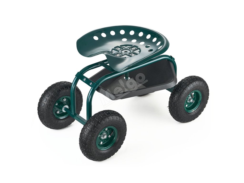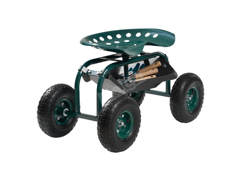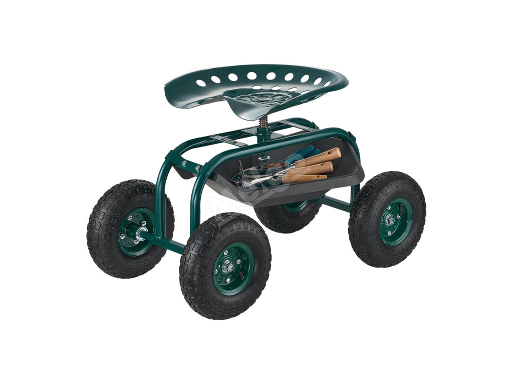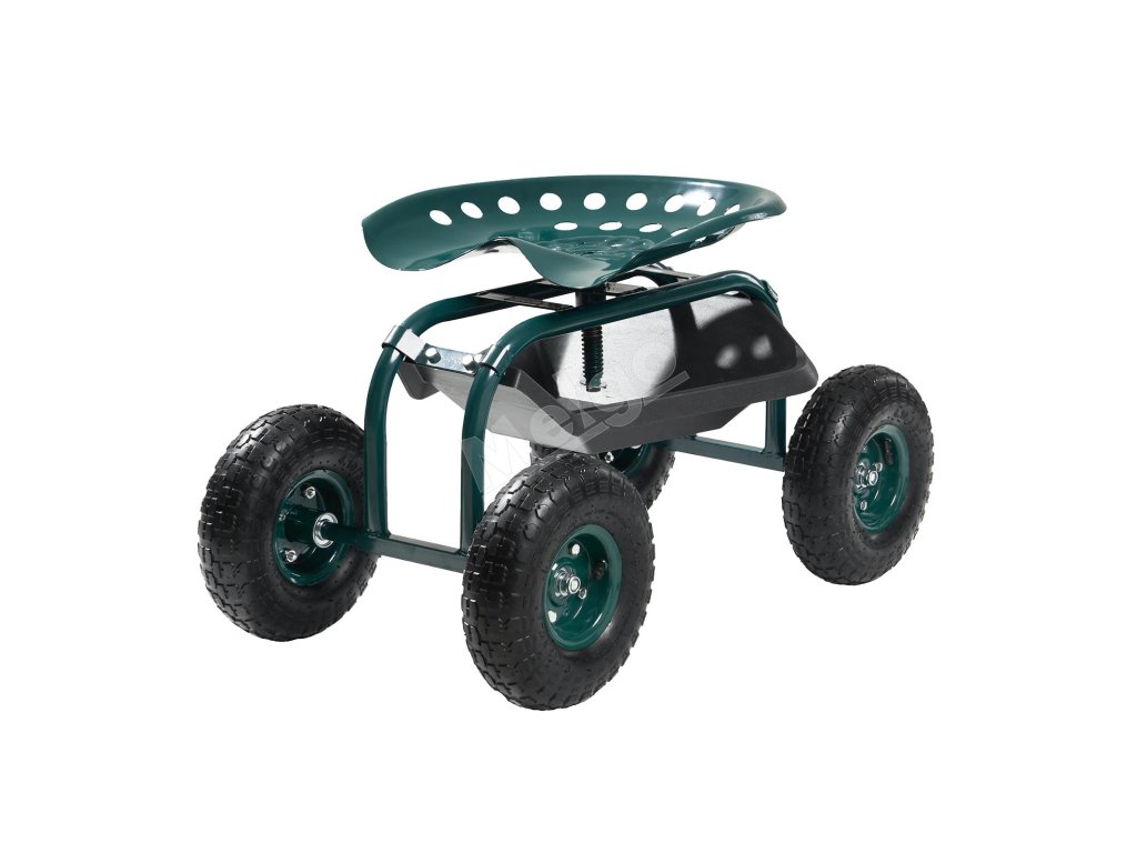 Pojazdný záhradný vozík so otočným sedadlom a košíkom, nosnosť 300 lbs