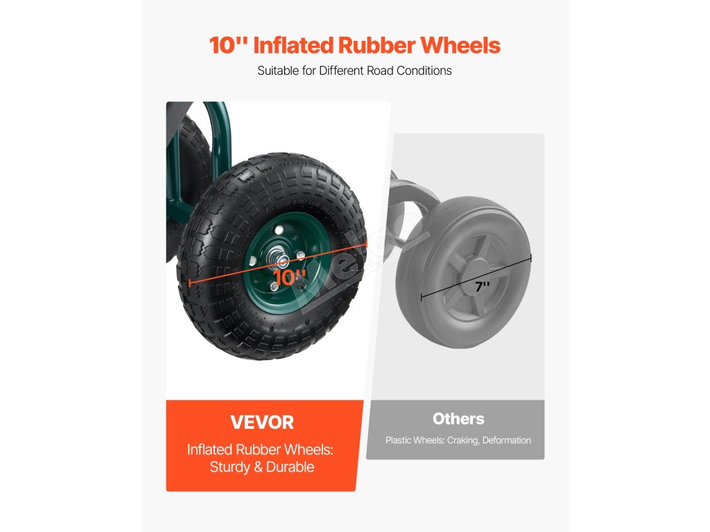 Toto pojazdné záhradné sedadlo je určené na záhradnícke práce na úrovni terénu, ako je sadenie, pletie alebo strihanie, a má ergonomický dizajn, ktorý udržiava váš chrbát a pás v pohodlí. Výškovo nastaviteľná rukoväť na riadenie bez námahy a veľké nafukovacie kolesá hladko kĺžu po všetkých terénoch