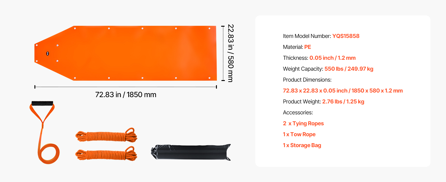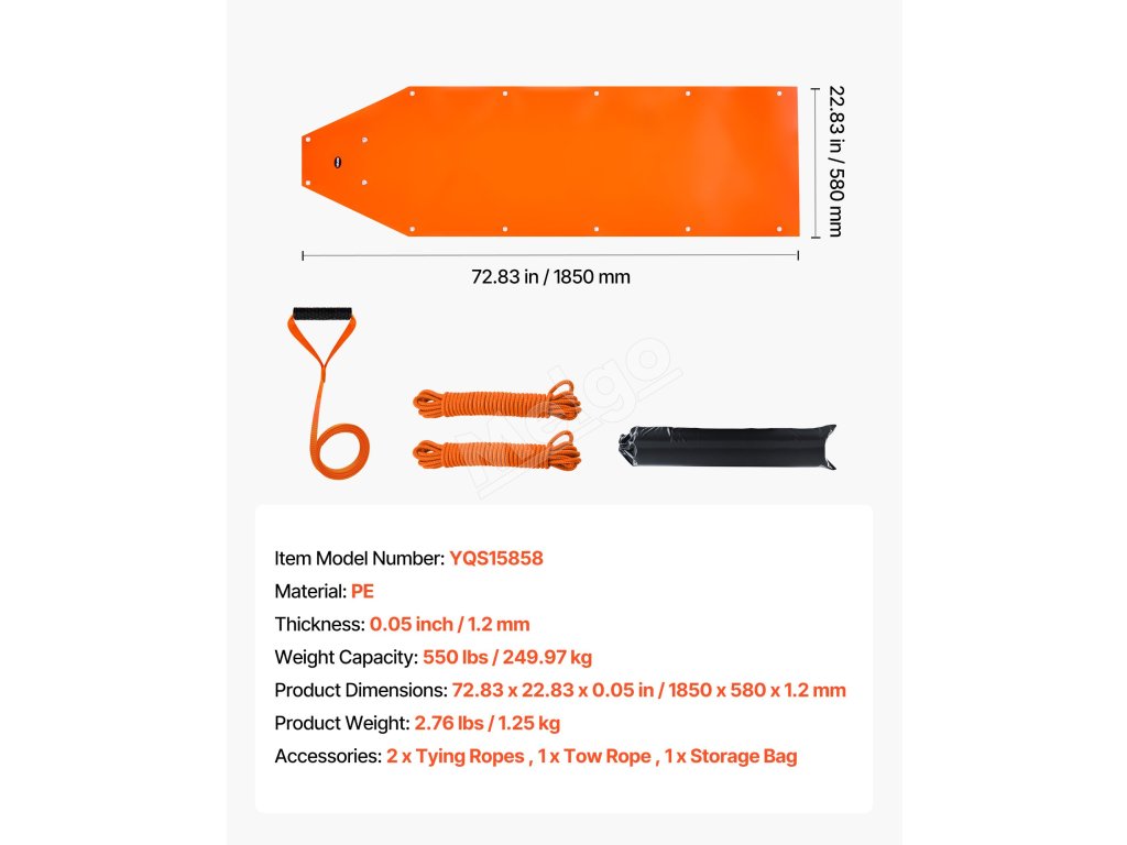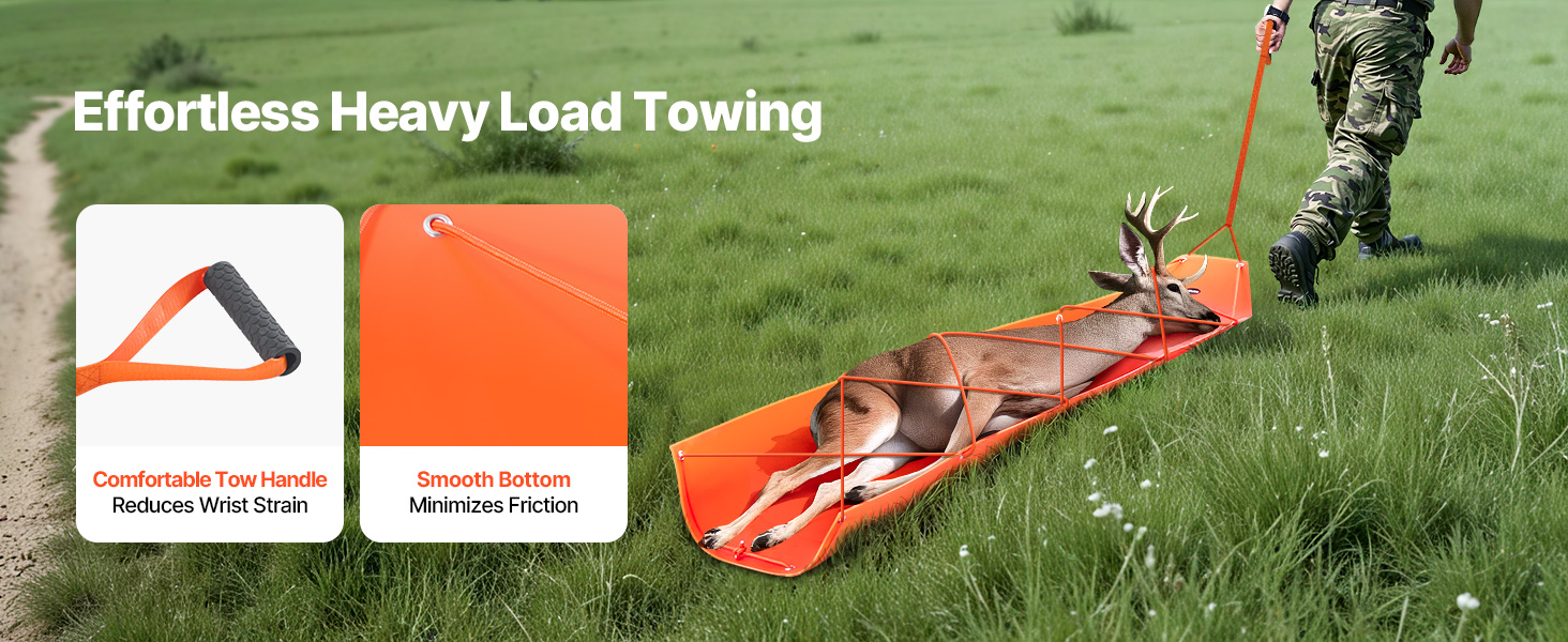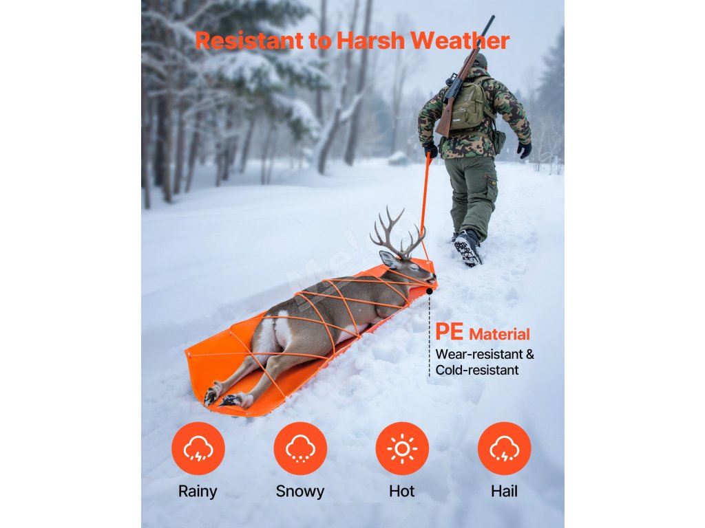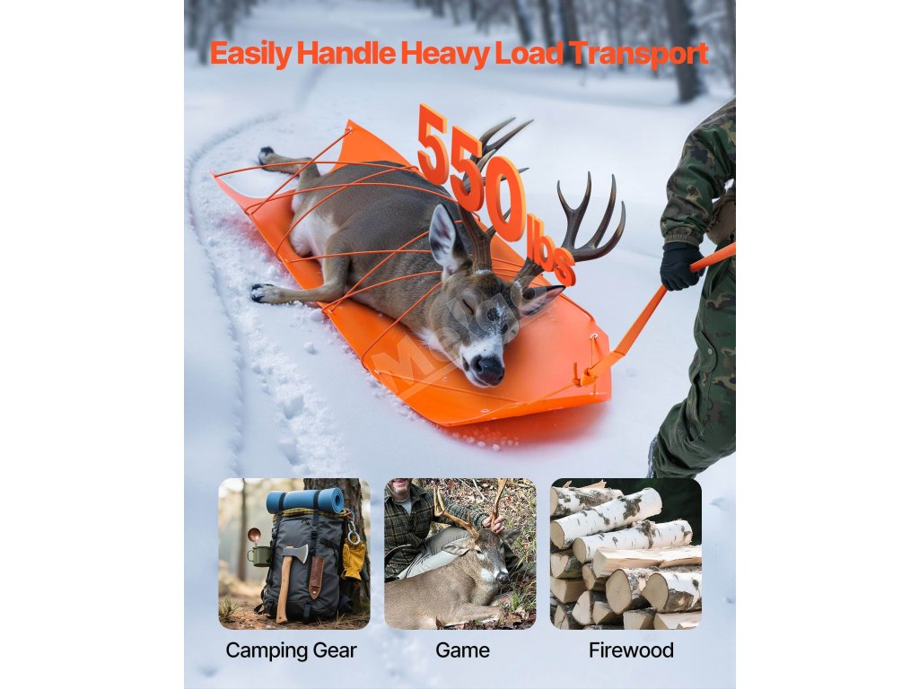 Tieto sane unesú až 550 libier / 249,97 kg a sú ideálne na ťahanie veľkej zveri, outdoorového vybavenia, palivového dreva atď. Sú vyrobené z vysokopevnostného PE odolného proti roztrhnutiu s hladkým povrchom na jednoduché ťahanie po snehu, tráve a nečistotách. Vybavený dvomi 141 v lanami na stabilné ťahanie, ktoré zabraňujú skĺznutiu nákladu.