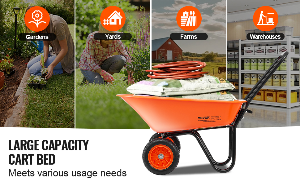 Či už v záhrade, na dvore, na farme alebo v sklade, tento záhradný vozík na kolieskach je vašou voľbou na premiestňovanie rastlín, pôdy a iných ťažkých predmetov.