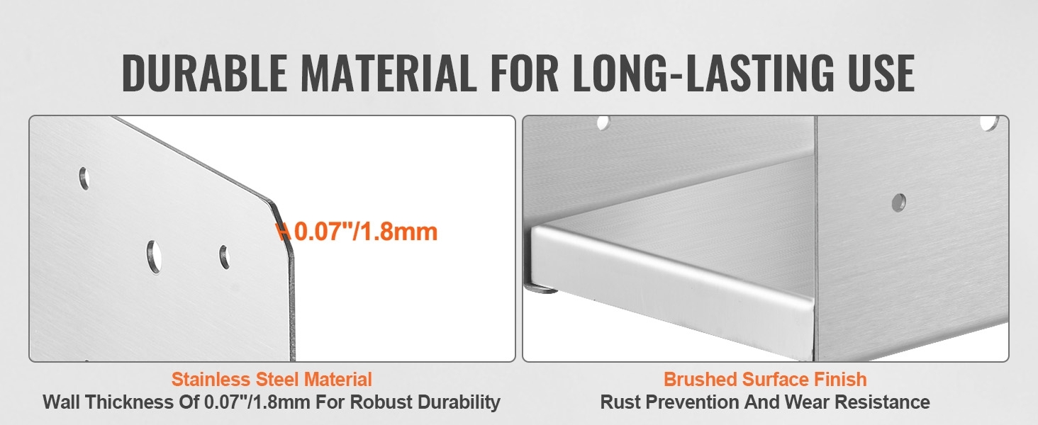 Vyrobené z robustnej nehrdzavejúcej ocele pre dlhú životnosť, odolnosť proti korózii a stabilitu. Obsahuje hrubú spodnú kryciu dosku na zabránenie rozkladu dreva. Dodáva sa s rôznym príslušenstvom na jednoduchú inštaláciu na rôzne povrchy.