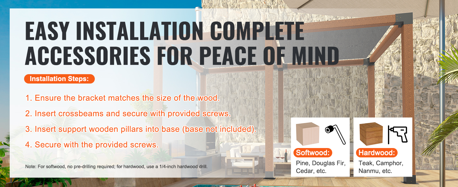 So všetkým potrebným príslušenstvom na bezpečnú inštaláciu si môžete vytvoriť stabilný vonkajší dvor, ktorý odolá silnému dažďu, snehu a poveternostným podmienkam podobným hurikánu bez potreby použitia ďalších komponentov.