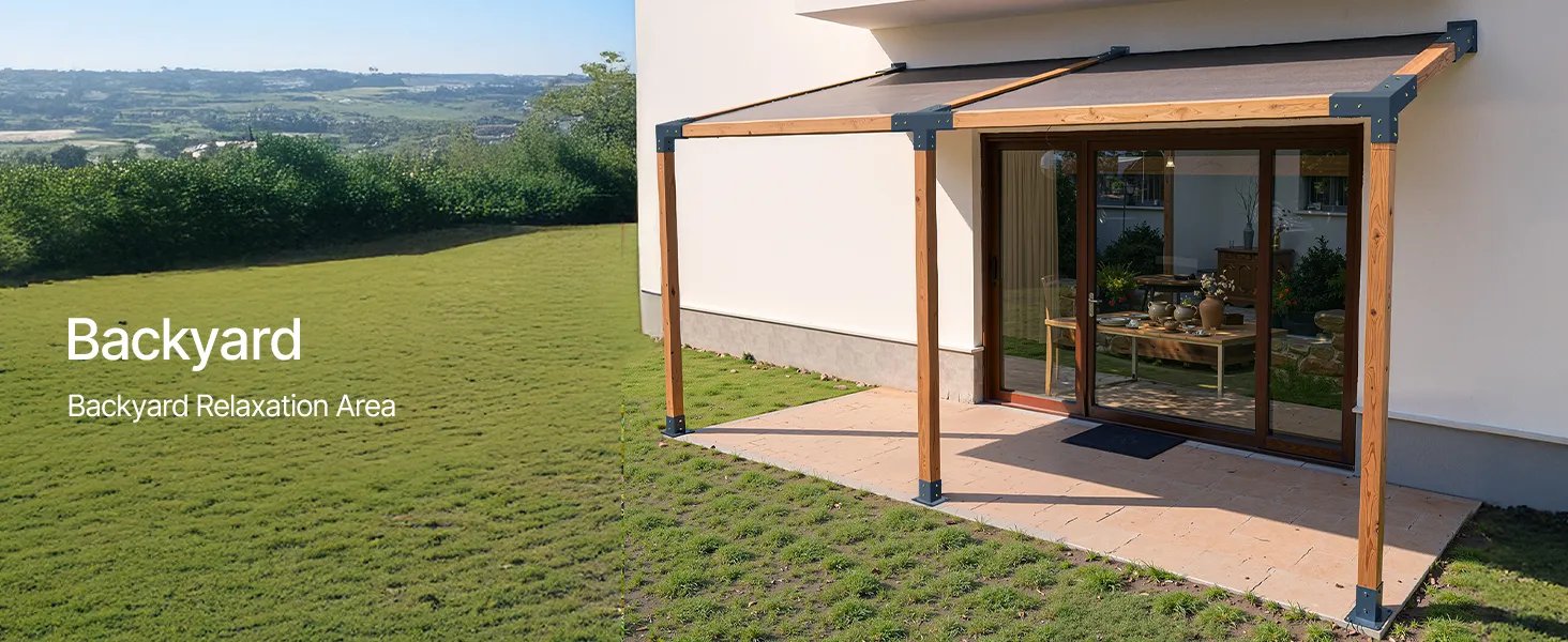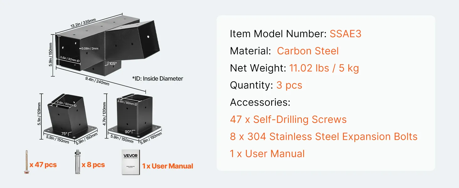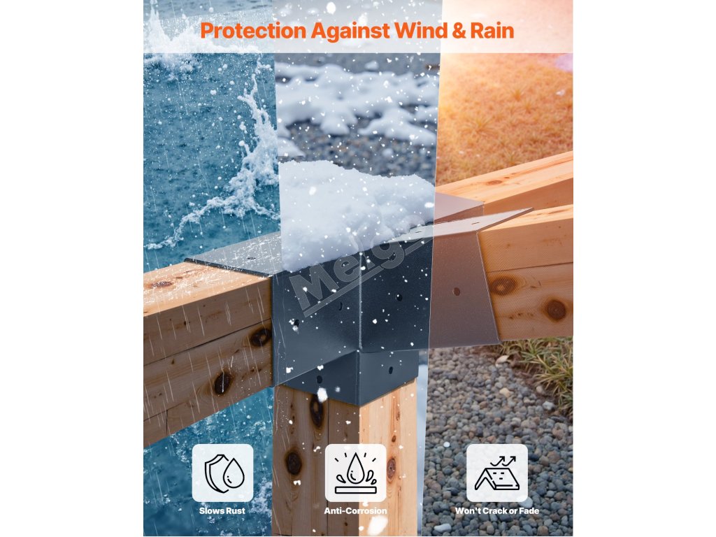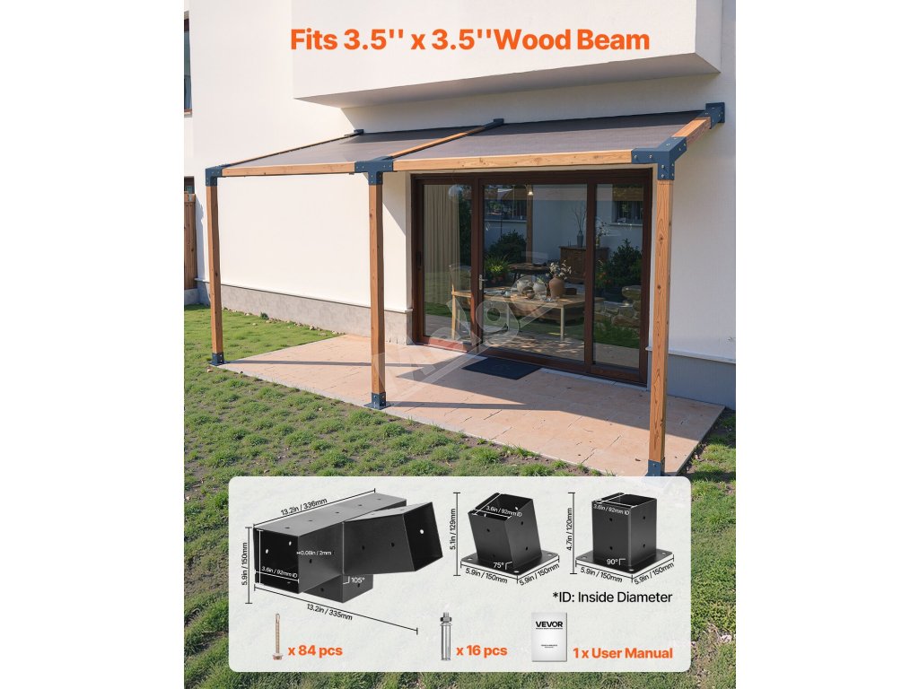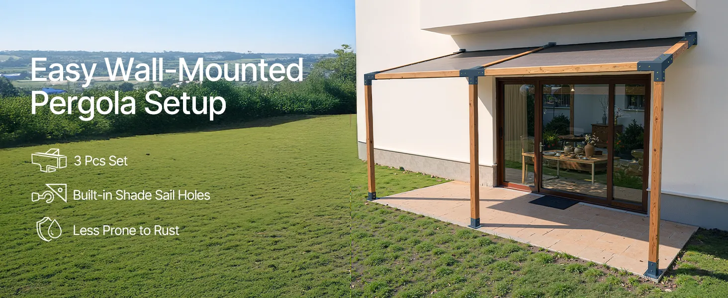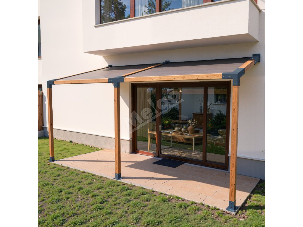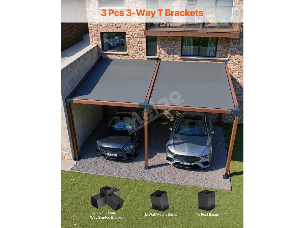 A1: Súprava obsahuje jednu uhlovú štvorcestnú, základňu pre zemný stĺpik a základnú konzolu pre montáž na stenu. Vhodná na stavbu jednopodlažnej pergoly so šikmou strechou