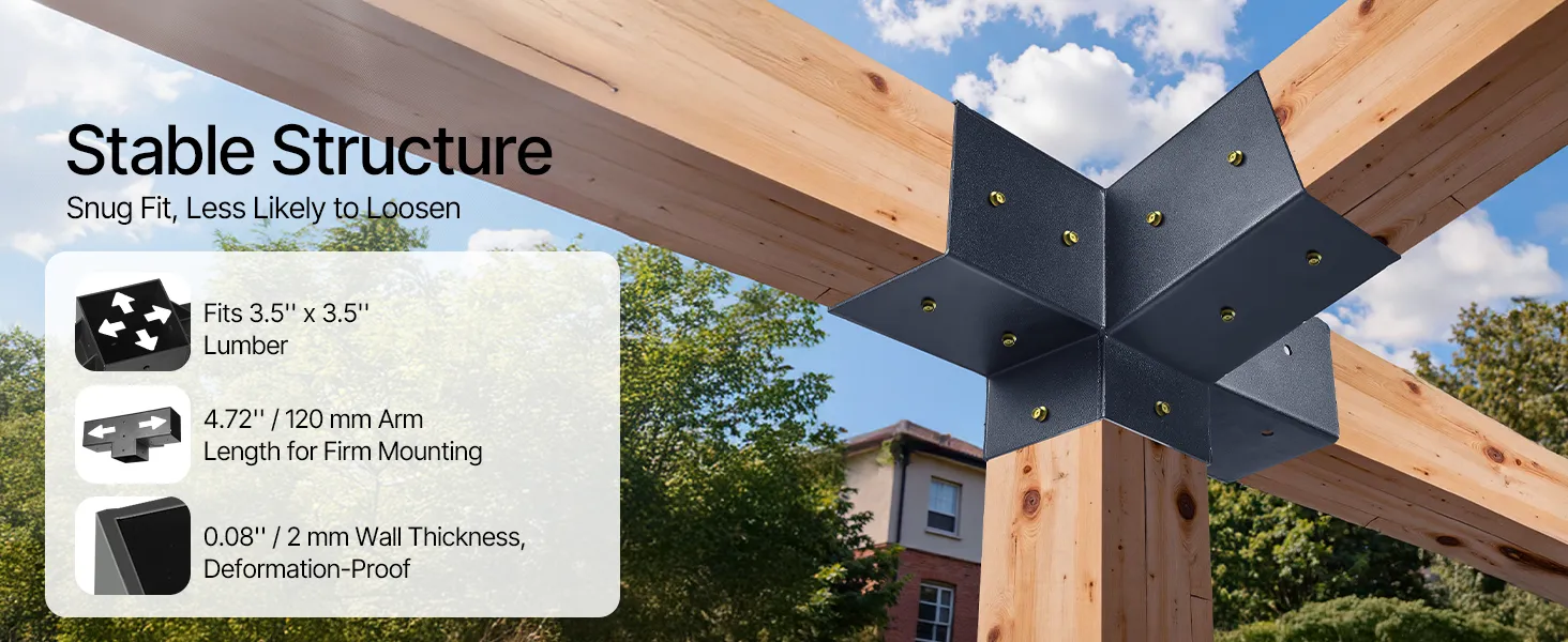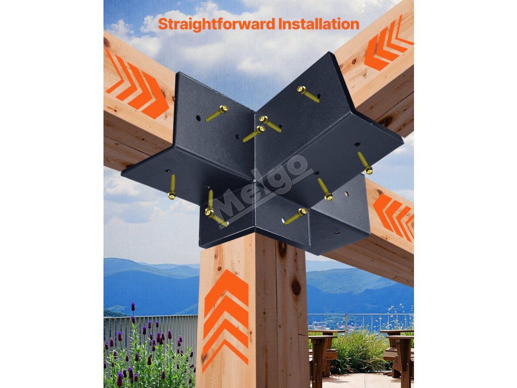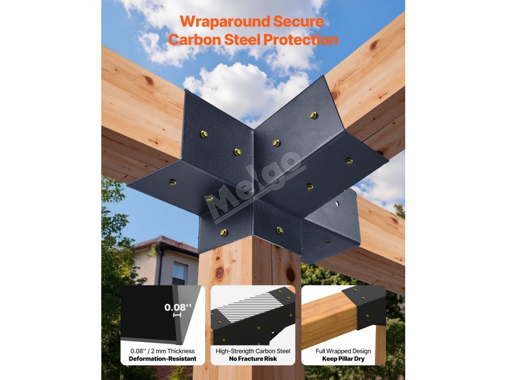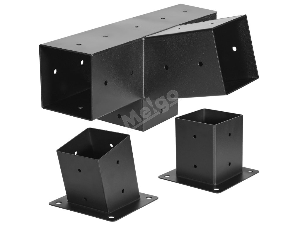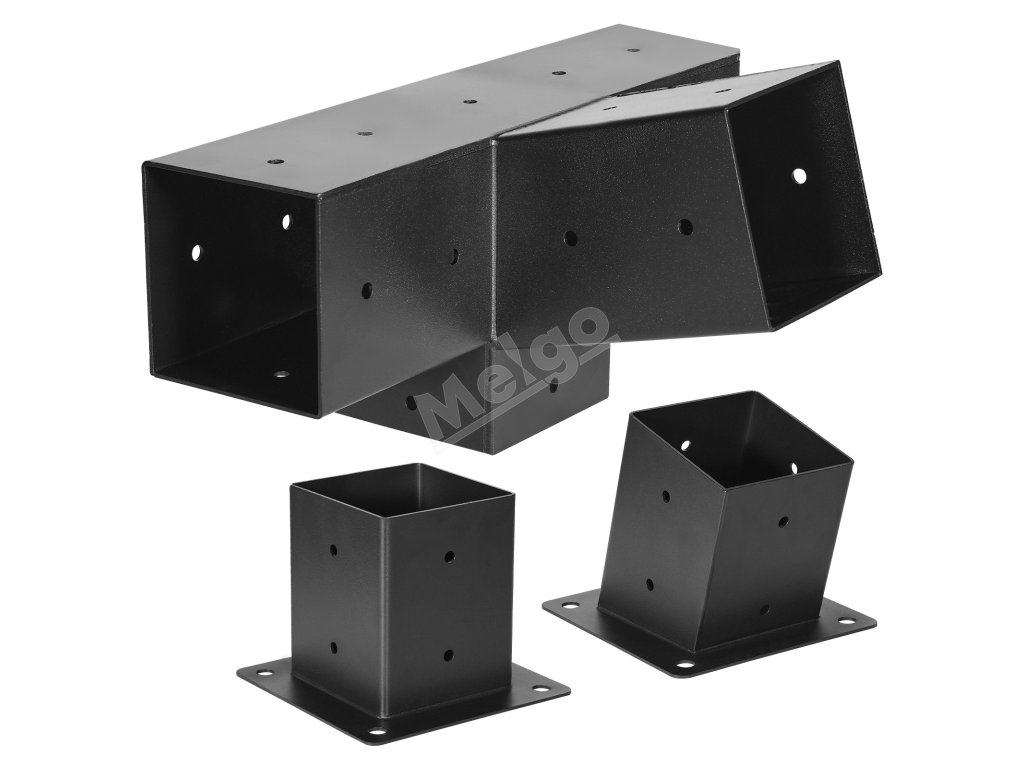 Držiak pergoly 4-cestný šikmý, 92×92 mm, uhlíková oceľ na stĺp a stenu