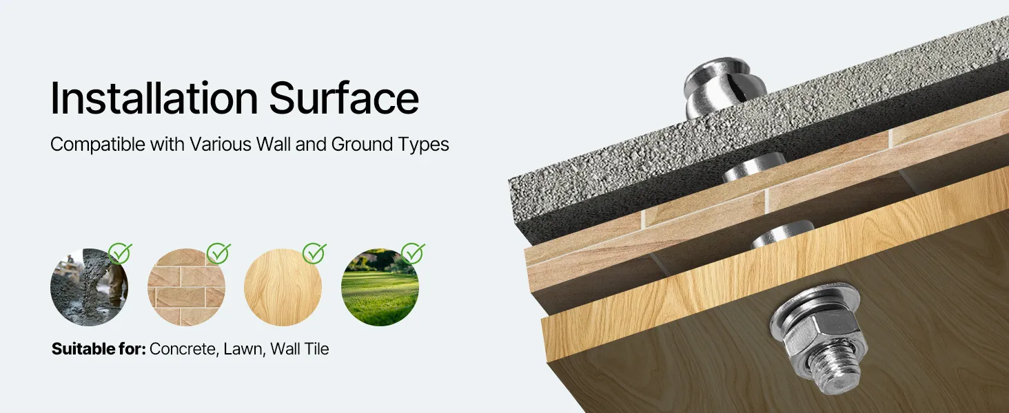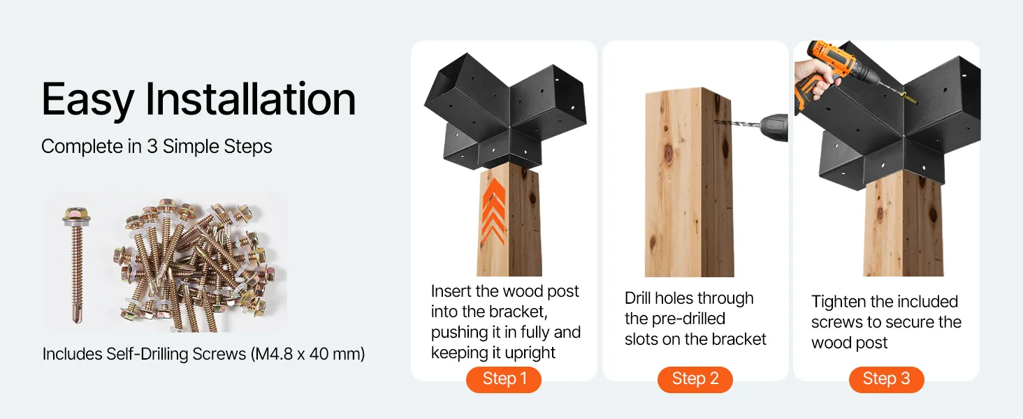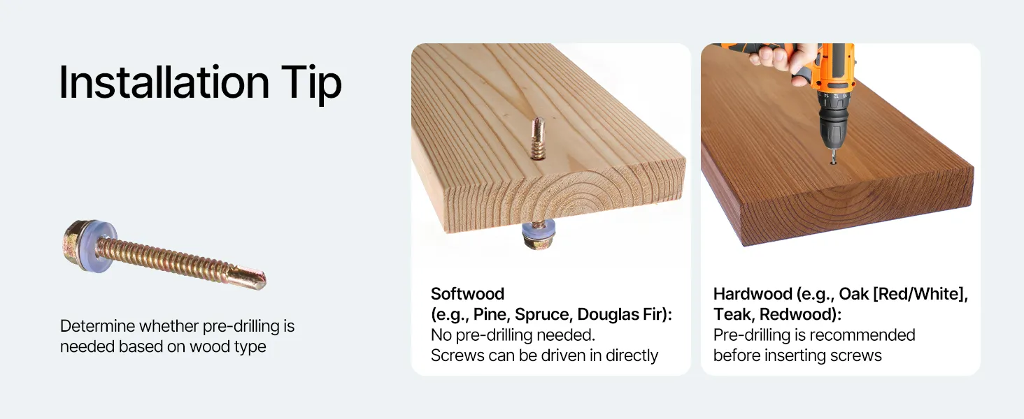 A2: Na mäkké drevo (napr. borovica, smrek, duglaska) možno použiť priamo skrutky. V prípade tvrdého dreva (napr. dub (červený/biely), teak, červené drevo) je potrebné predvŕtať. Výrobok je kompatibilný aj s inštaláciami do betónu, trávnika a tehlových stien.