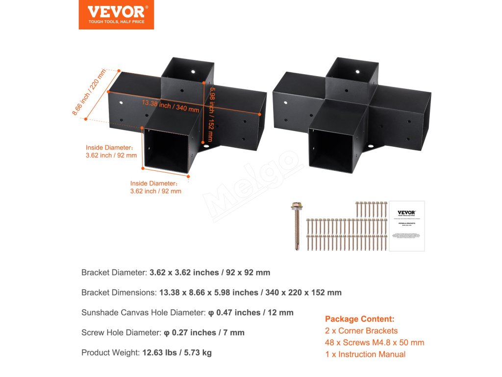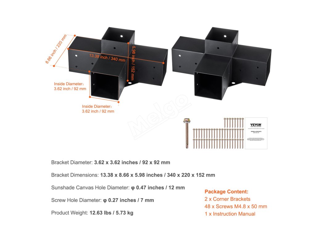 Rohové spojky 4-cestné 2 ks 10.2×10.2 cm vnútorný 9.1×9.1 cm