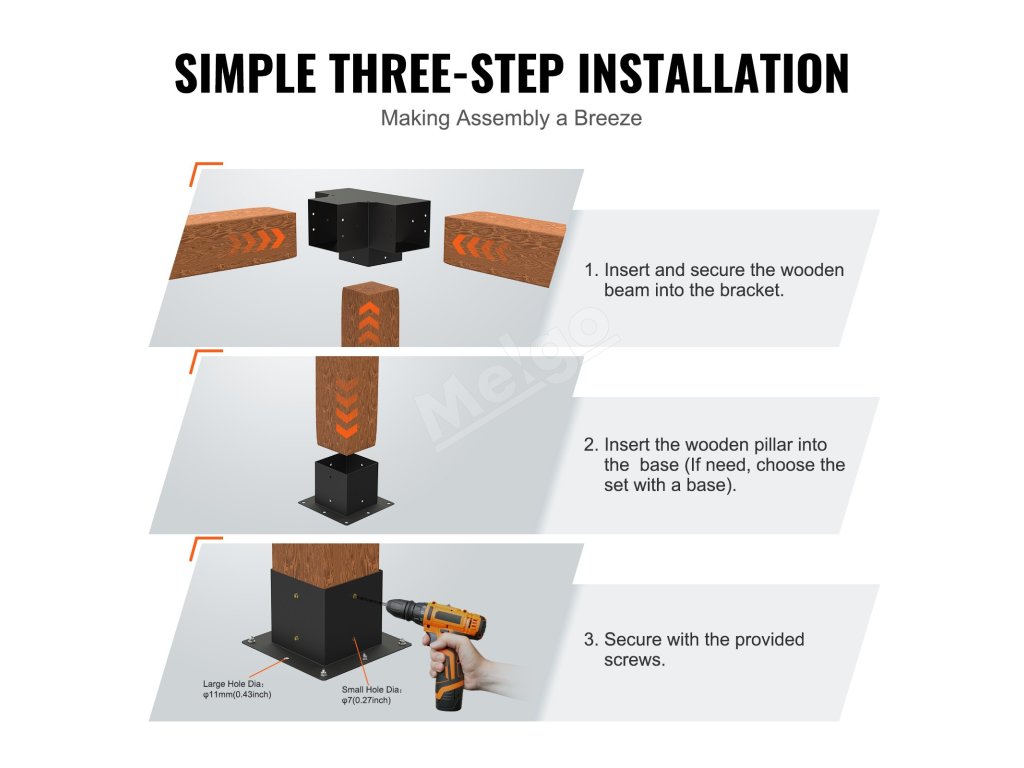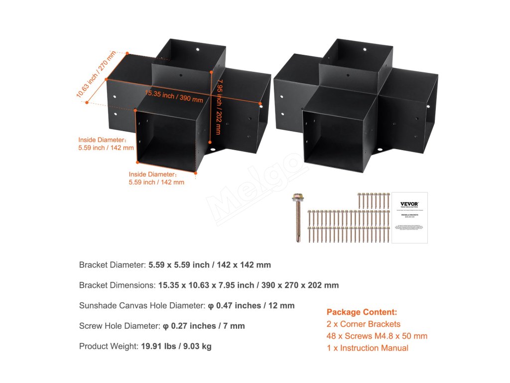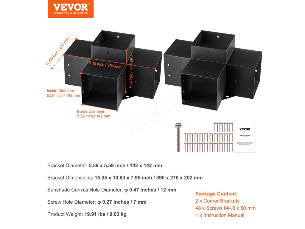 Sada 4-cestných rohových držiakov na stĺpy 6''×6'' vnút. 5.6×5.6, 2 ks