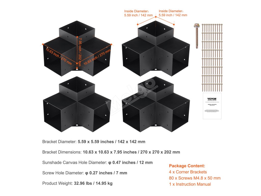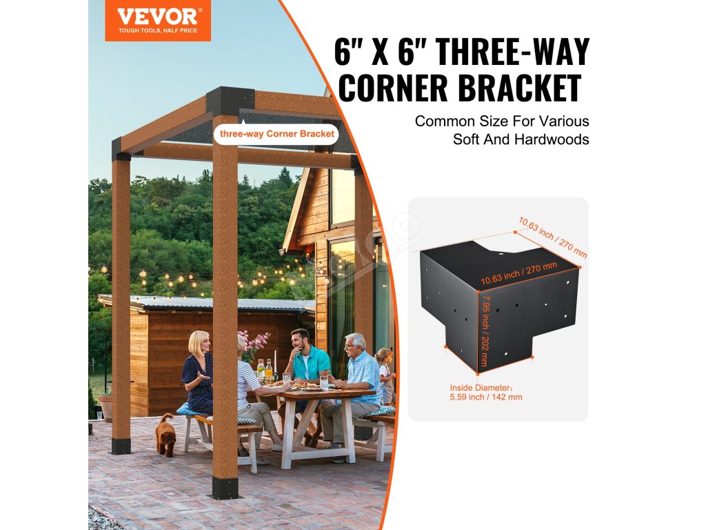 Sada rohových držiakov pre pergolu 6''×6'' vnút. 5.6×5.6 4 ks 3-cestné