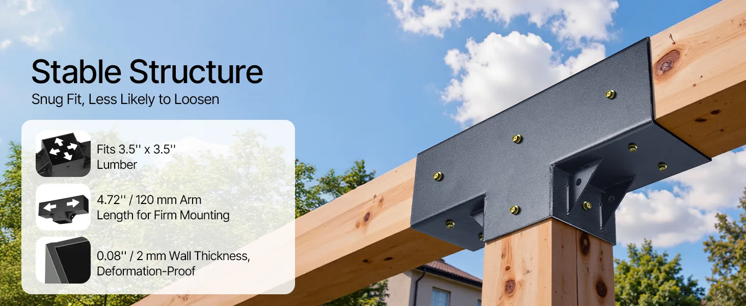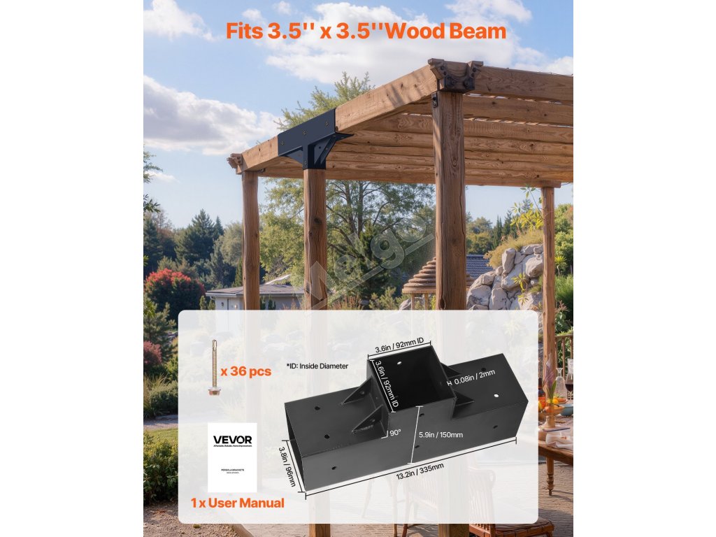 Súprava pergolových t-tvarových konzol 2 ks, 92×92 mm, 3-cestné