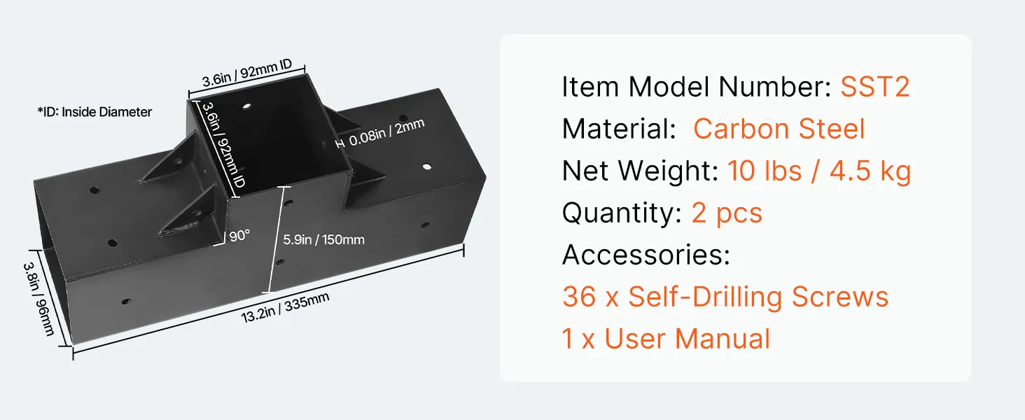A4: Konzola s rozmermi 4'' x 4'' (vnútorný rozmer: 3,62'' x 3,62'') je vhodná pre drevo so skutočnými rozmermi 3,5'' x 3,5''. Konzola 6'' x 6'' (vnútorný rozmer: 5,59'' x 5,59'') je vhodná pre rezivo so skutočným rozmerom 5,5'' x 5,5''. >