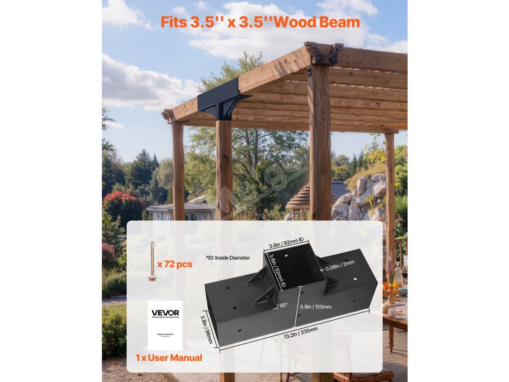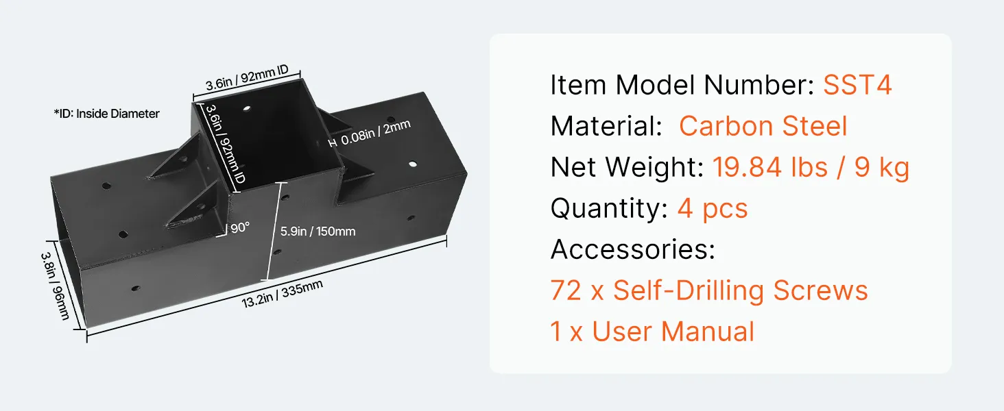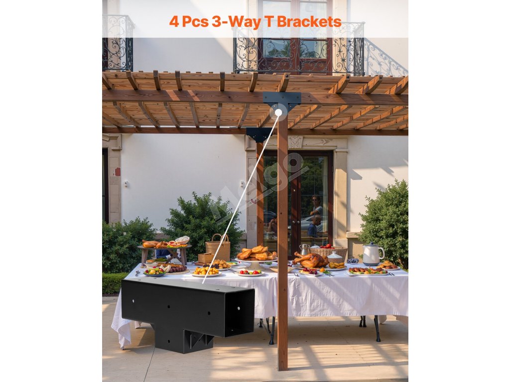 Súprava t-pätiek na pergolu 3-cestné 4×4 (92×92 mm) s vrutmi 4 ks