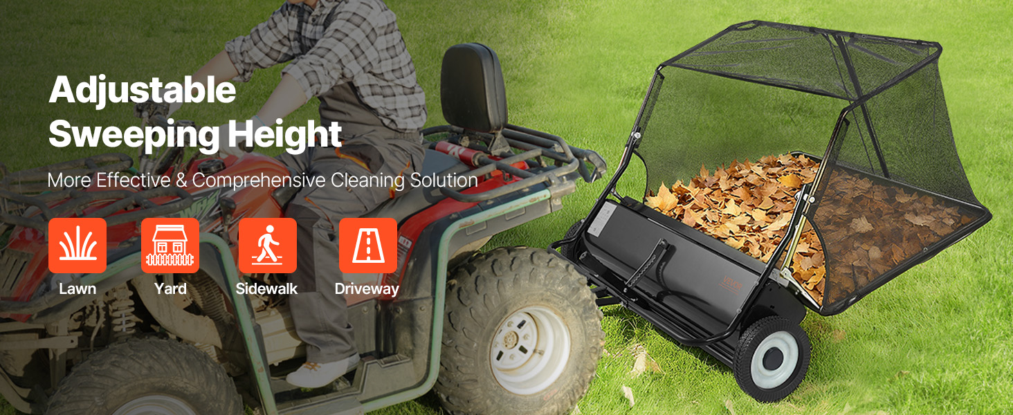 Predná časť tohto vlečného zametača trávnika je vybavená ručne nastaviteľnou výškou kefy - nie je potrebné žiadne špeciálne náradie. Jednoducho nastavte kefu do ideálnej vzdialenosti od zeme na cielený a účinný zber lístia, pokosenej trávy, ihličia a iných nečistôt.