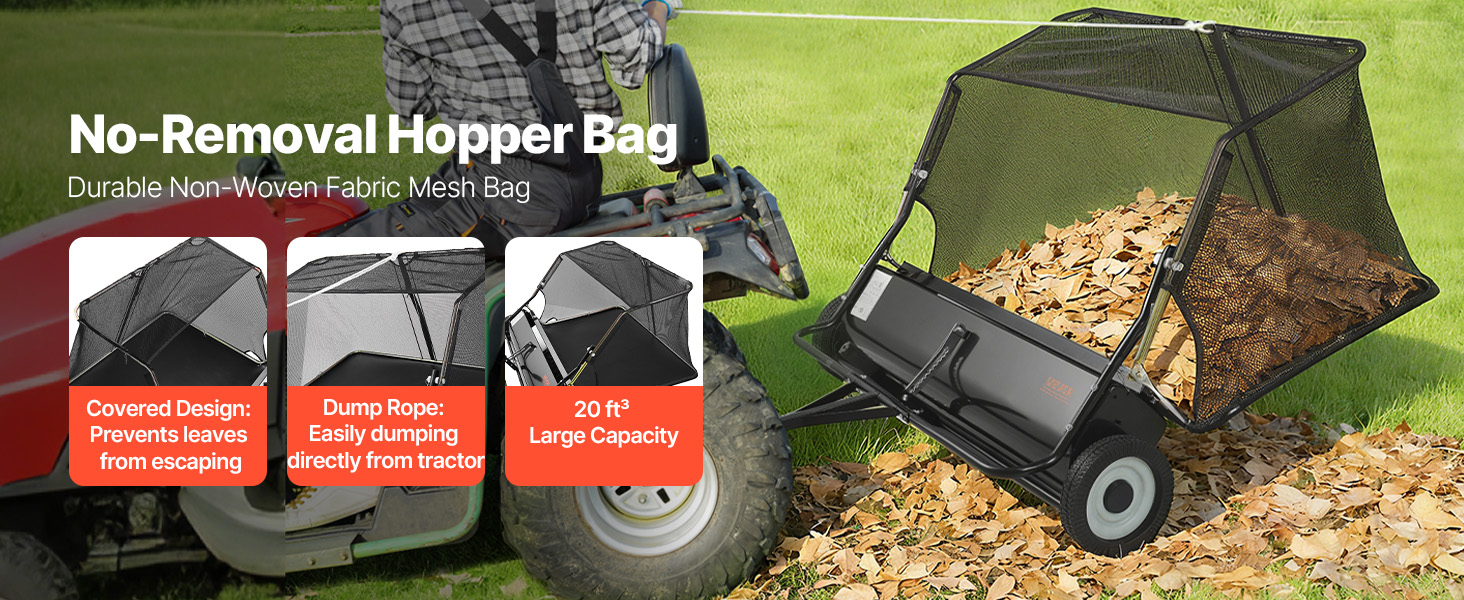 Zametací stroj na lístie sa dodáva s vrecom z netkanej textílie s objemom 20 ft³, ktoré vám umožní naraz pozbierať viac lístia, trávy a nečistôt. Obal zabraňuje rozfúkaniu lístia vo veternom počasí a praktické výsypné lano vám umožní vyprázdniť vrecko priamo z traktora - nemusíte ho vyberať.