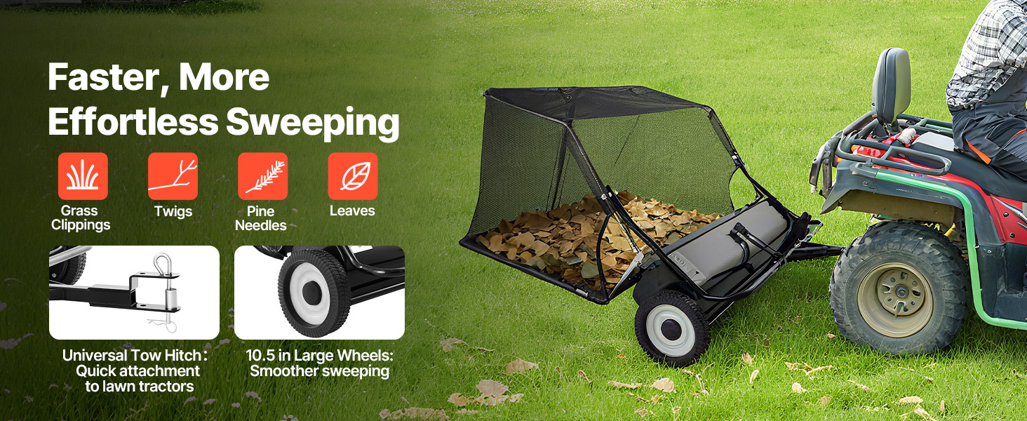 Zametací stroj jednoducho pripevnite na zadnú časť trávnikového traktora a jeho výkonná rotujúca kefa rýchlo pozbiera lístie, malé konáre a burinu, vďaka čomu je čistenie vonku rýchle a jednoduché.