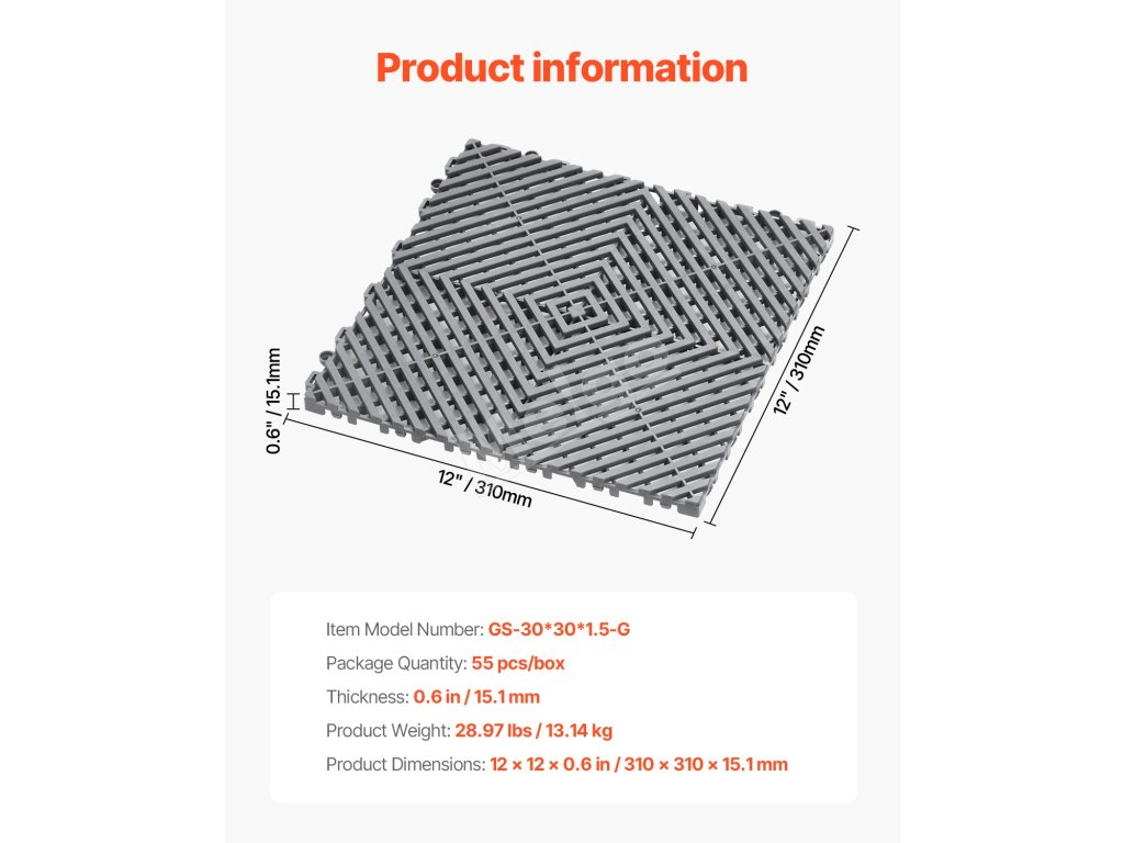 Spojovacie drenážne dlaždice 55 ks 12"×12", protišmykové sivé pp
