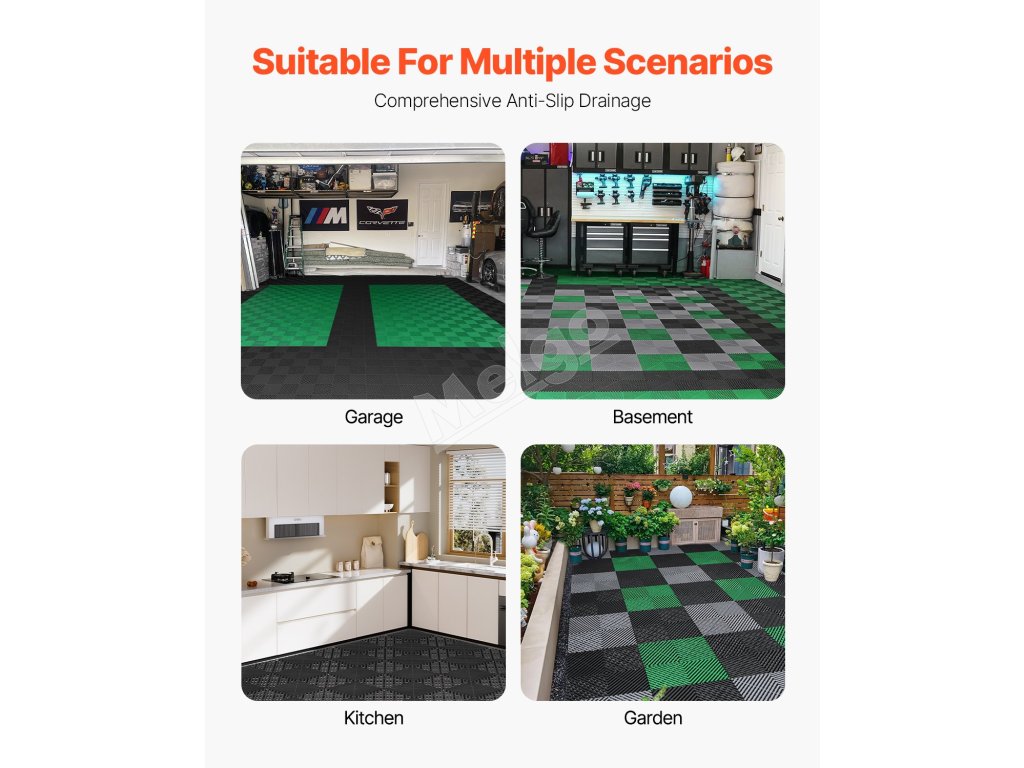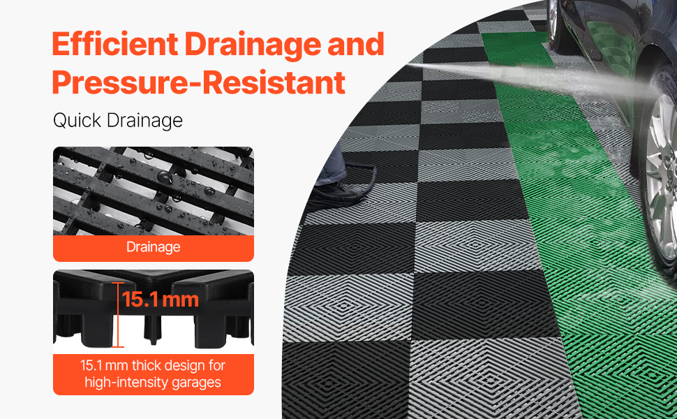 Táto drenážna podlahová dlaždica je ideálna pre garáže, autoservisy alebo akékoľvek vlhké priestory, ktoré potrebujú spoľahlivú drenáž.