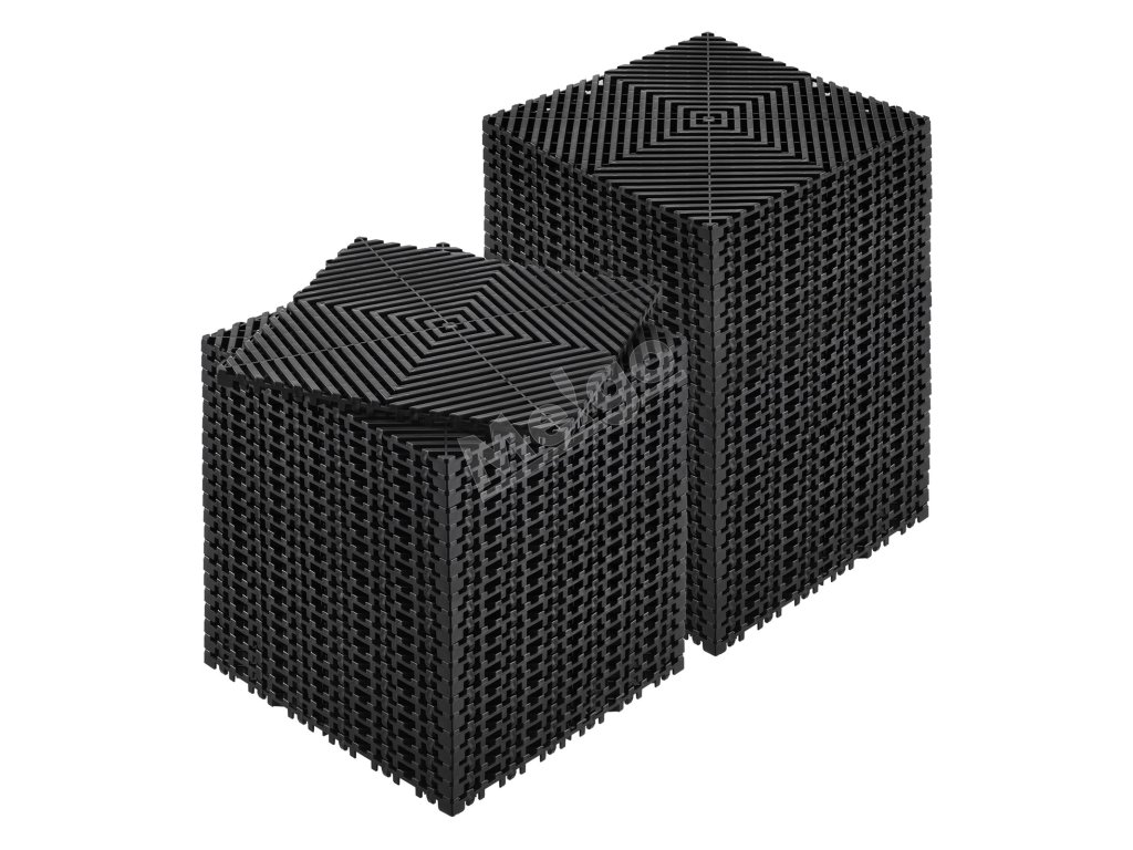 Táto drenážna rohož má jednoduchý blokovací dizajn - stačí zacvaknúť jednotlivé kusy do seba; nie je potrebné žiadne náradie.