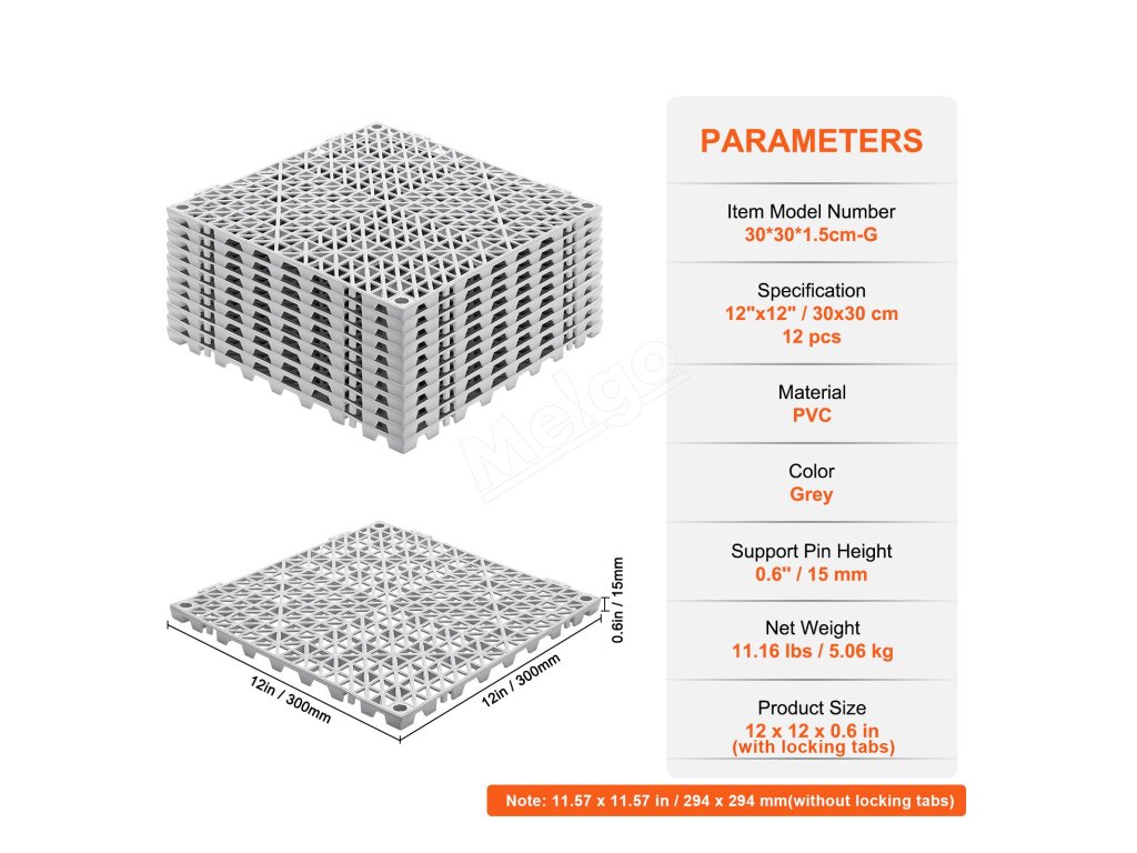 | Veľkosť výrobku | 12 x 12 x 0,6 palca/300 x 300 x 15 mm (s uzamykacími výstupkami) |