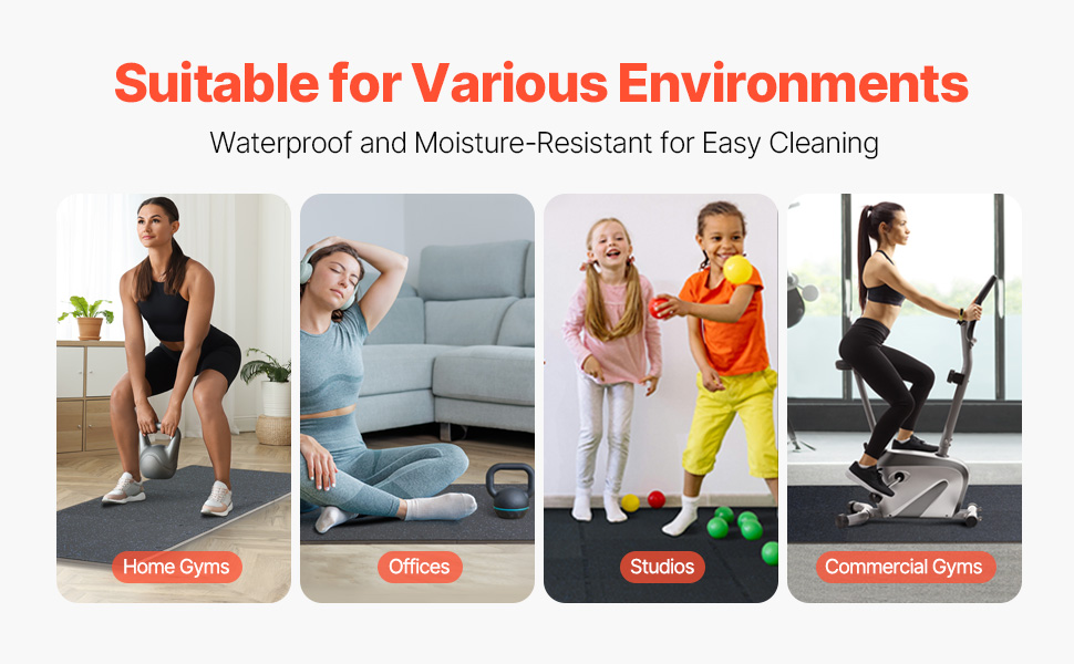 Táto gumová podlahová rohož vyrobená z vodoodolného materiálu odolného voči vlhkosti sa ľahko čistí - stačí ju utrieť. Je vhodná do domácich telocviční, podnikov, štúdií a komerčných fitnescentier.