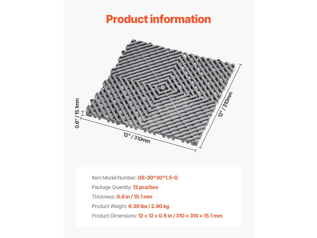 Prepojiteľná drenážna rohož 12”×12”, 12 ks, protišmyková sivá pp