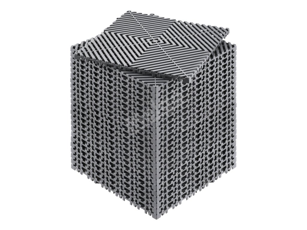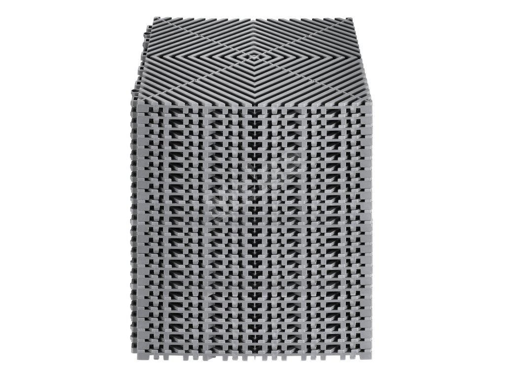 Táto drenážna rohož má jednoduchý blokovací dizajn - stačí zacvaknúť jednotlivé kusy do seba; nie je potrebné žiadne náradie.