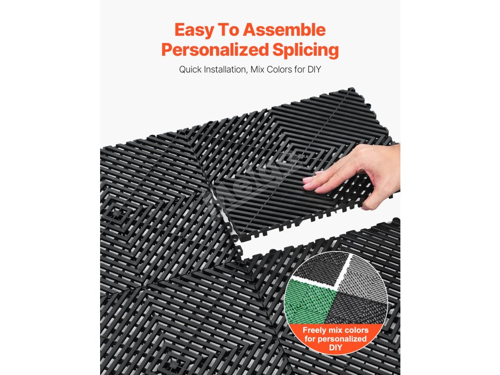 Prepojiteľné odtokové rohože 12 ks 12"×12" čierne pp protišmykové