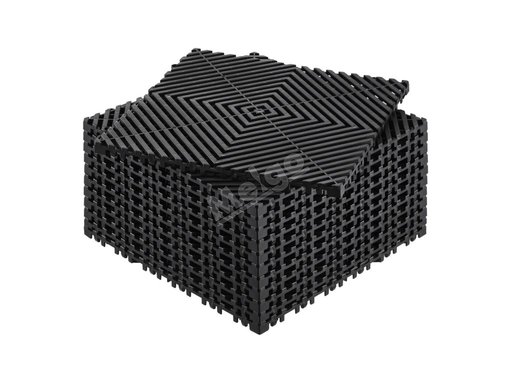 Táto drenážna podlahová dlaždica je ideálna pre garáže, autoservisy alebo akékoľvek vlhké priestory, ktoré potrebujú spoľahlivú drenáž.