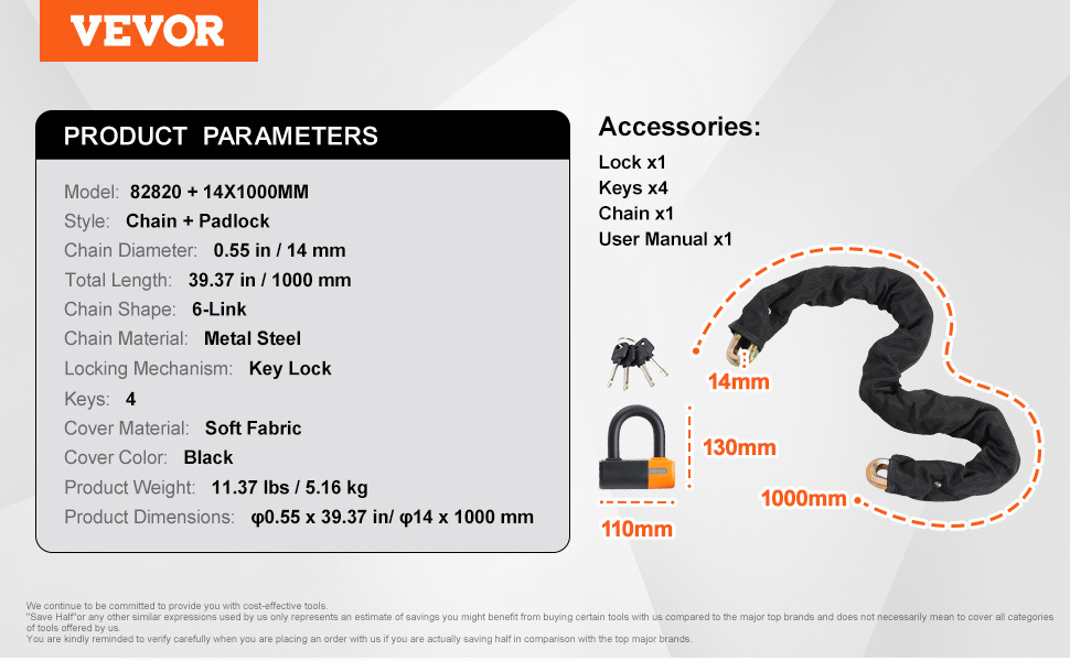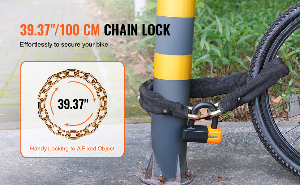 S veľkorysou dĺžkou 39,37 palca (100 cm) vám tento dizajn reťazového zámku na bicykel umožňuje jednoducho zabezpečiť rám a predné koleso motocykla bez ohľadu na to, kam vás vaša jazda zavedie.