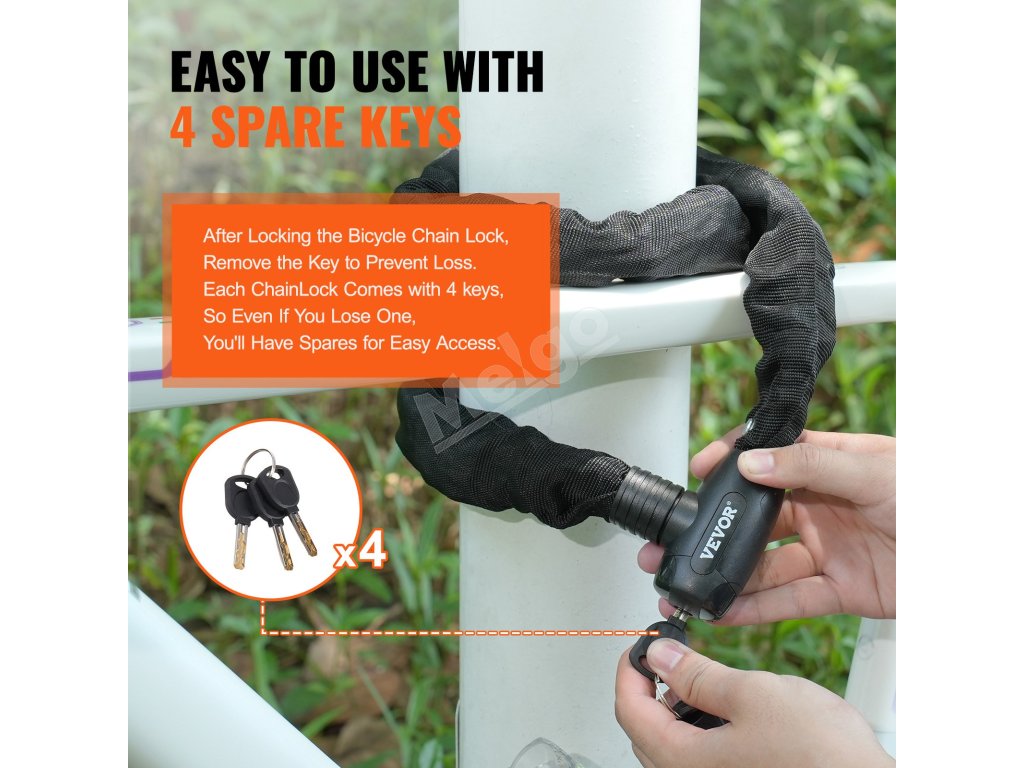 Reťazový zámok na bicykel 3.94 Ft, 8 mm, kombinácia, 4 kľúče