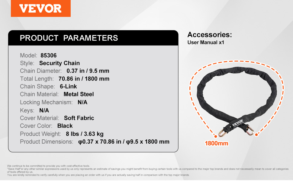 | Priemer reťaze | 0.37 palcov / 9,5 mm |