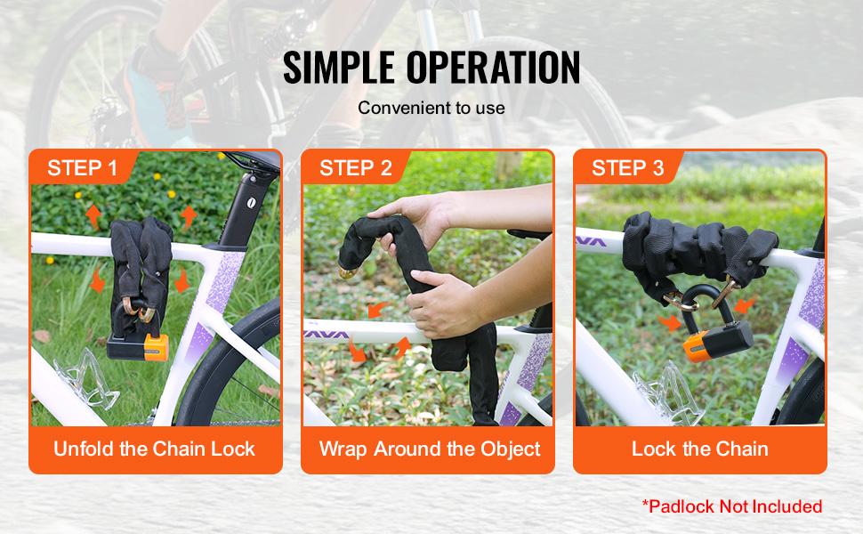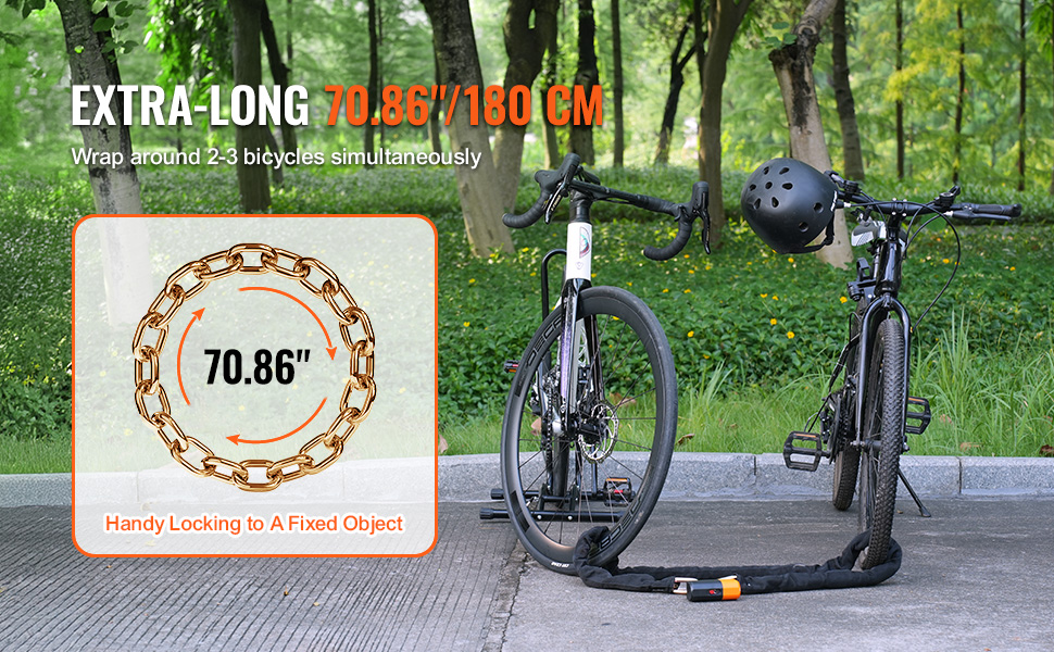 Vďaka superdlhej konštrukcii reťaze s dĺžkou 70,86 palca/180 cm ju možno obtočiť okolo 2 - 3 bicyklov súčasne, čo je vhodné na použitie pri jazde s rodinou alebo priateľmi.