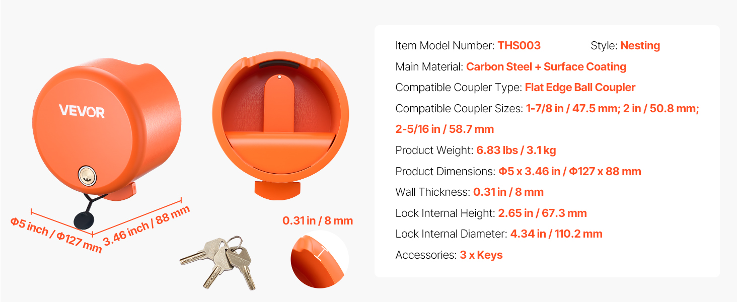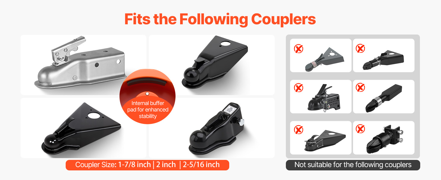 Tento zámok prívesu je vhodný pre 1-7/8, 2 a 2-5/16 palcové guľové spojovacie zariadenia s rovným jazykom. Poznámka: Pred nákupom si pozrite obrázky, aby ste sa uistili, že zodpovedá vášmu spojovaciemu zariadeniu, aby presne pasoval!