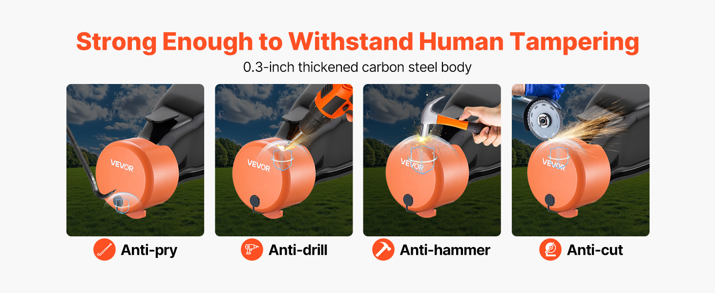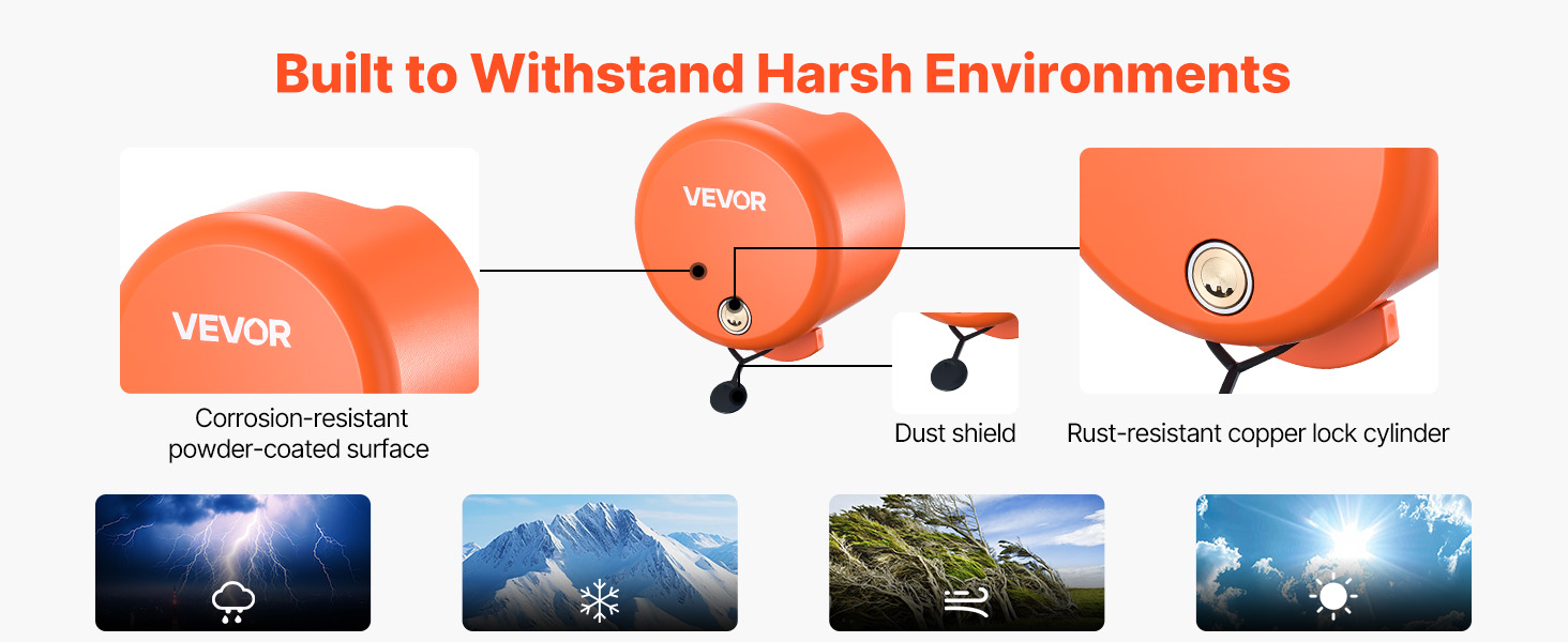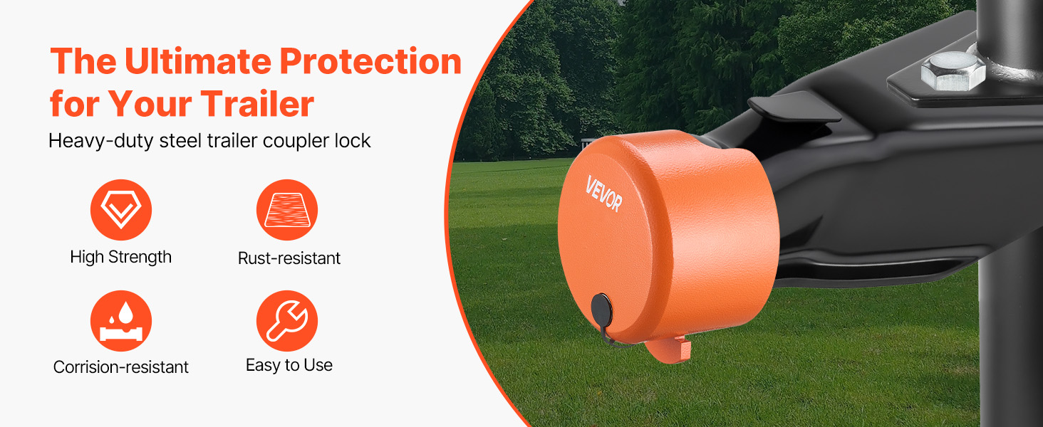 Náš 6,83 kg ťažký zámok spojky je vyrobený z vysokopevnostnej uhlíkovej ocele, vďaka čomu je odolný a bezpečný pre váš príves alebo obytný automobil. Zabezpečte svoje vozidlo pred krádežou, keď je zaparkované vonku!