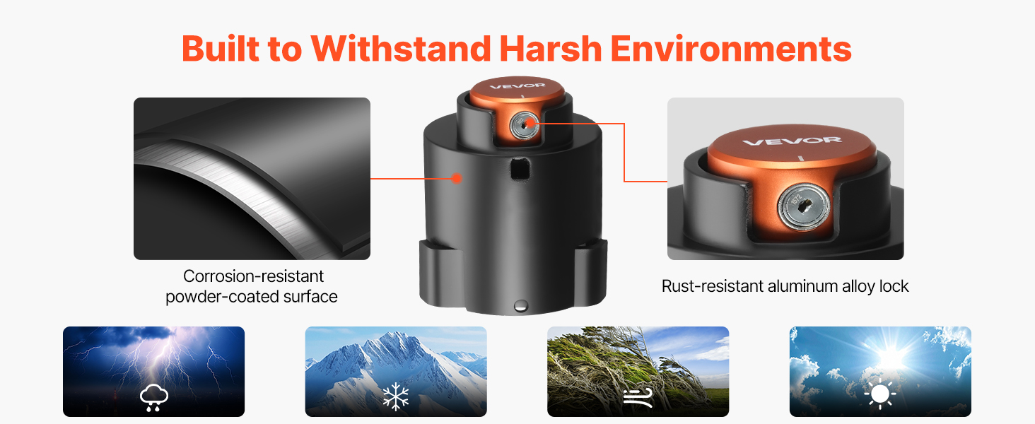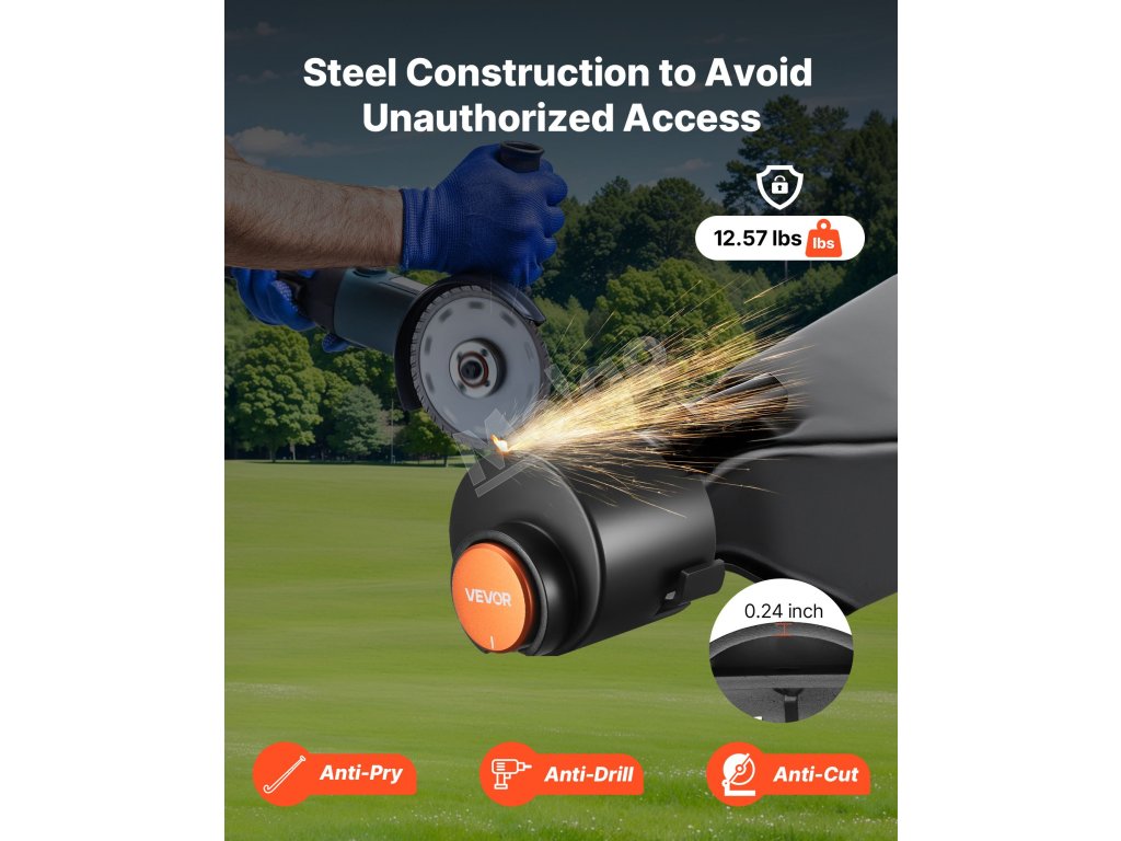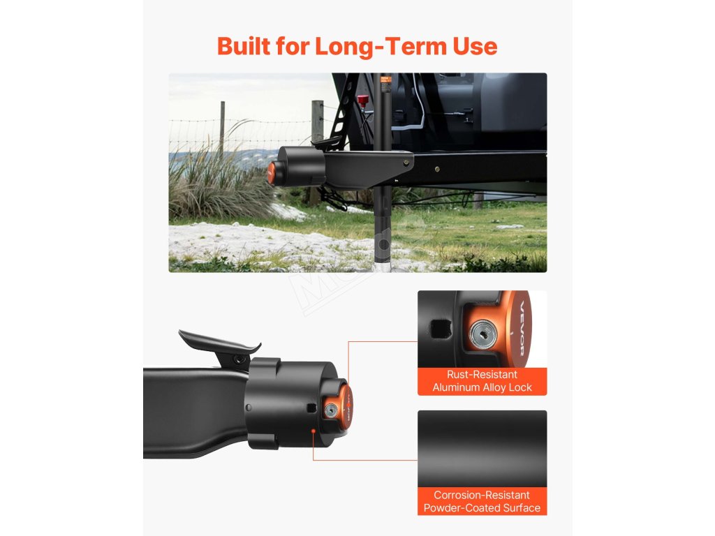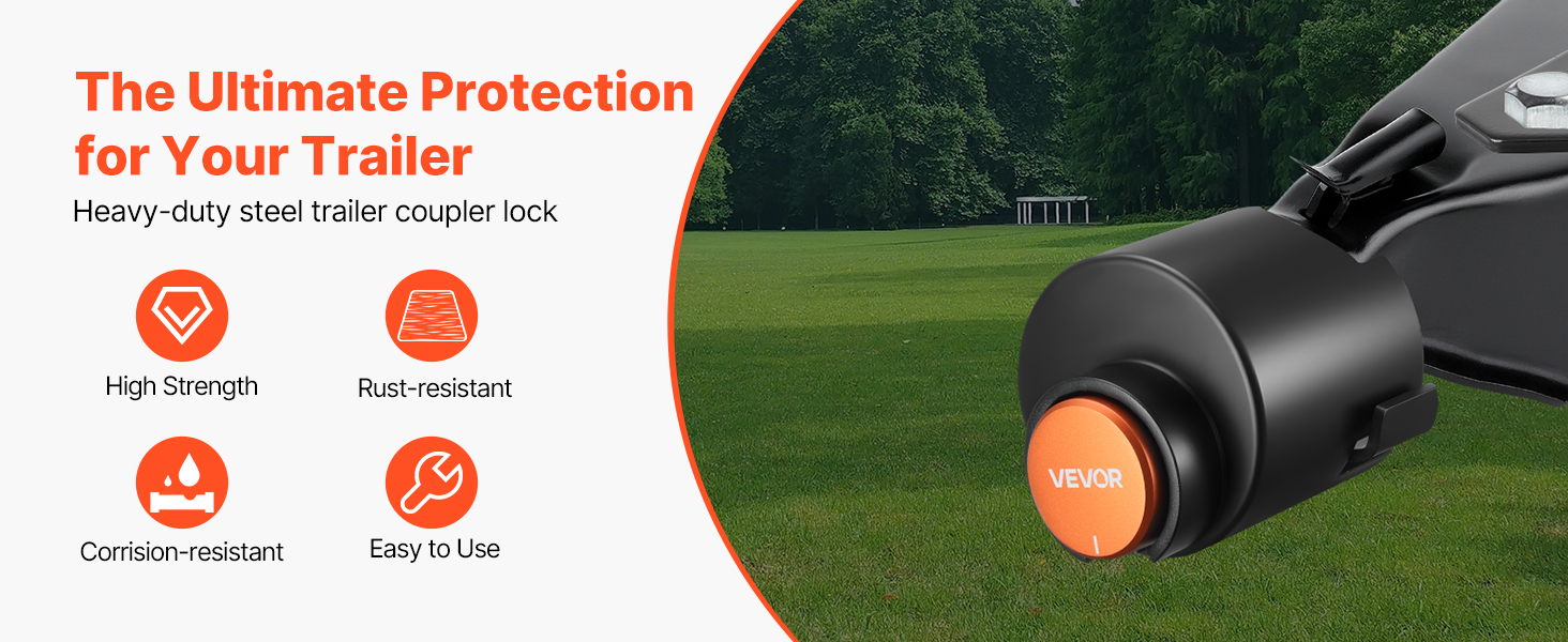 Náš 12,57 kg ťažký zámok spojky je vyrobený z vysokopevnostnej uhlíkovej ocele, vďaka čomu je odolný a bezpečný pre váš príves alebo obytný automobil. Zabezpečte svoje vozidlo pred krádežou, keď je zaparkované vonku!