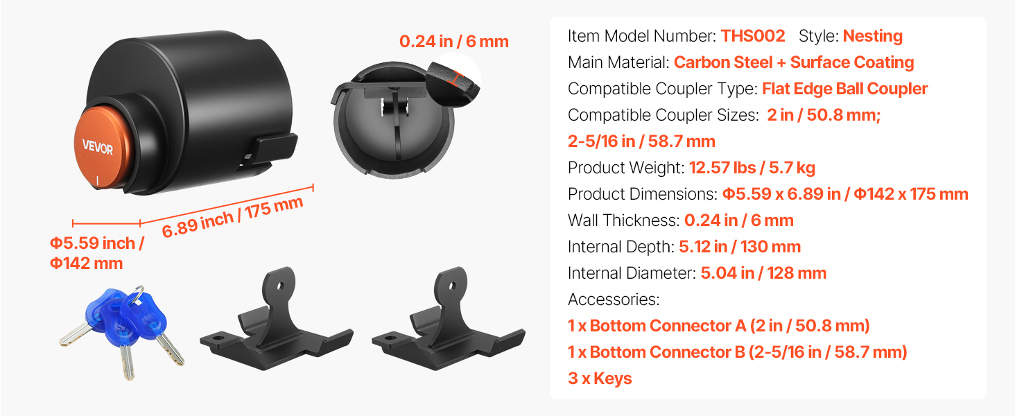 Tento zámok prívesu je vhodný pre 2 a 2-5/16 palcové guľové spojovacie zariadenia s plochou hranou. Poznámka: Pred nákupom si pozrite obrázky, aby ste sa uistili, že zodpovedá vášmu spojovaciemu zariadeniu, aby presne pasovalo!