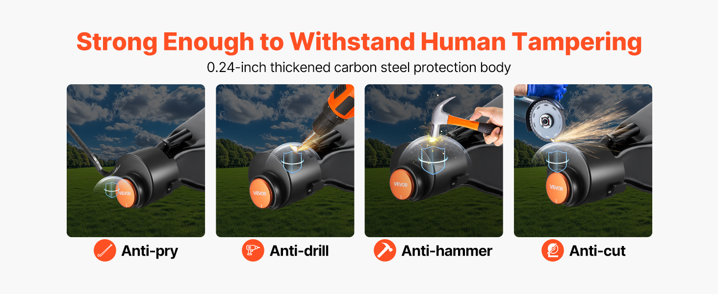 Vďaka telu z uhlíkovej ocele s hrúbkou 0,24 palca je tento zámok závesu prívesu odolný voči poškodeniu kladivami, elektrickým náradím alebo páčidlami. Je skonštruovaný tak, aby zabezpečil váš príves bez ohľadu na to, kde parkujete.
