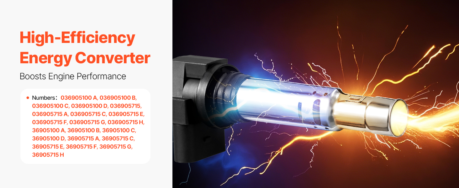 Zapaľovacia cievka využíva vysokoúčinný systém premeny energie, ktorý transformuje nízkonapäťovú elektrickú energiu na vysokonapäťové iskry, čím zlepšuje účinnosť spaľovania, znižuje energetické straty a poskytuje rýchlu odozvu. Tým sa optimalizuje celkový výkon motora.